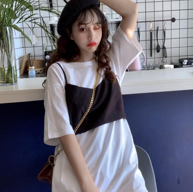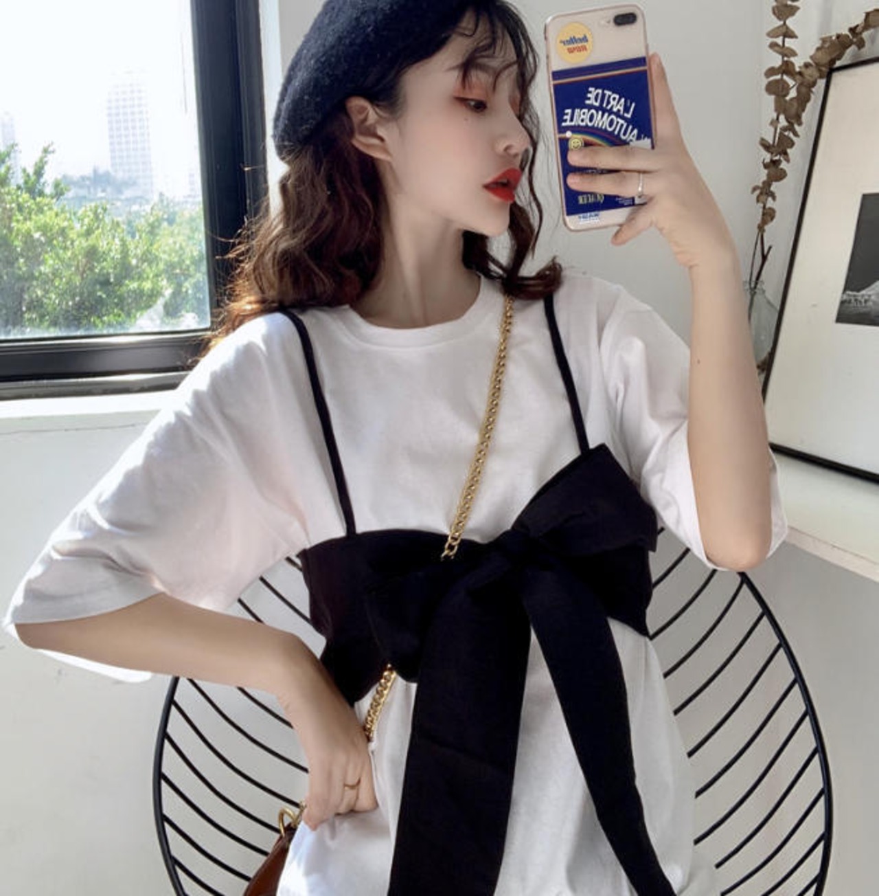 2way Tシャツ ビスチェ トップス 2点セット バックコンシャス リボン ガーリー 半袖