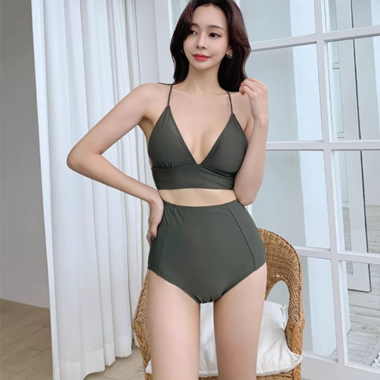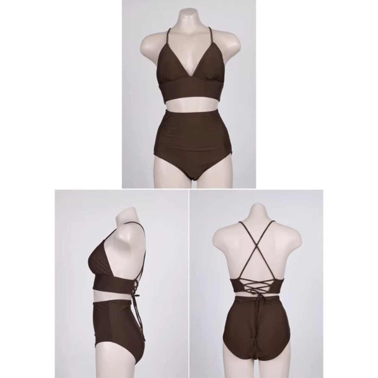 水着 ビキニ ハイウエスト バックコンシャス レースアップ バッククロス 大人可愛い