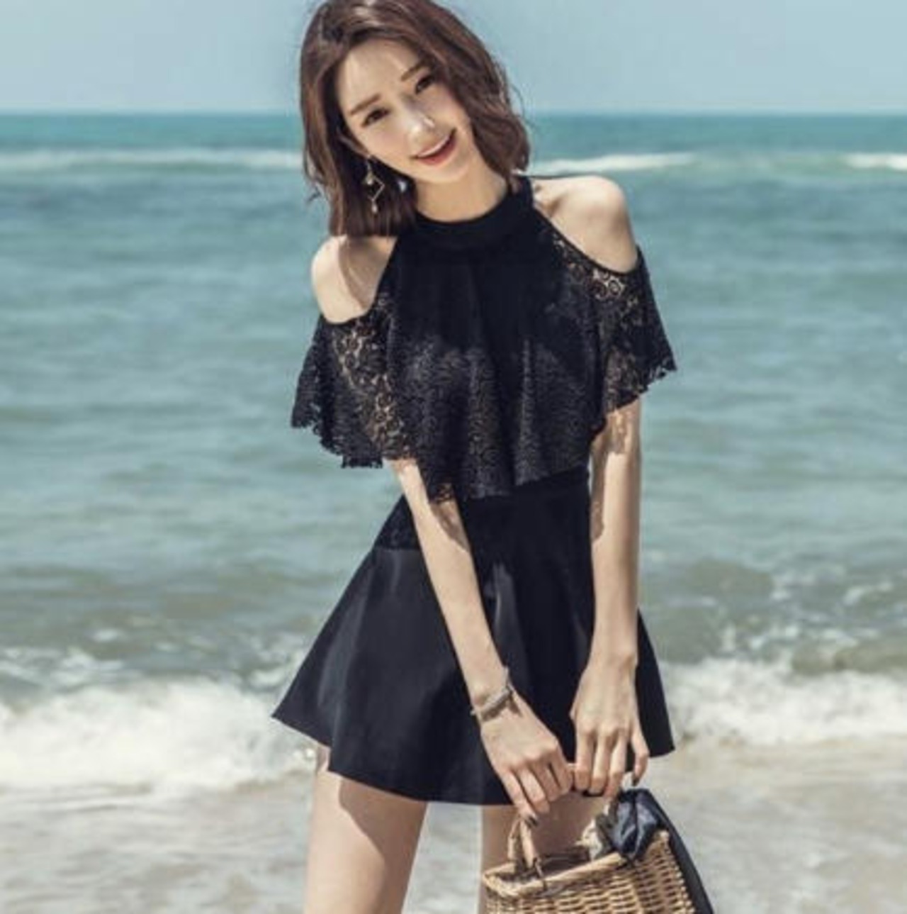 ワンピース水着 レース オープンショルダー セクシー 体型カバー おしゃれ