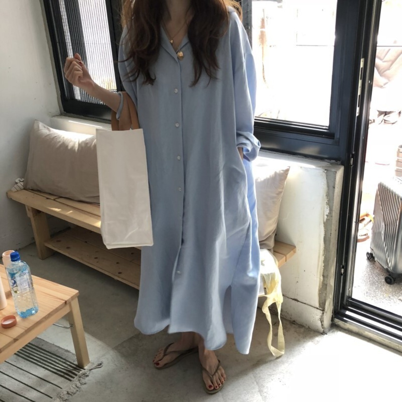 大人カジュアル ゆるカジ ロング丈 シャツワンピ