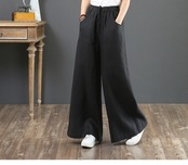 ナチュラルコーデに♡ ラフ カジュアル リネン ワイドパンツ ズボン ウエストゴム