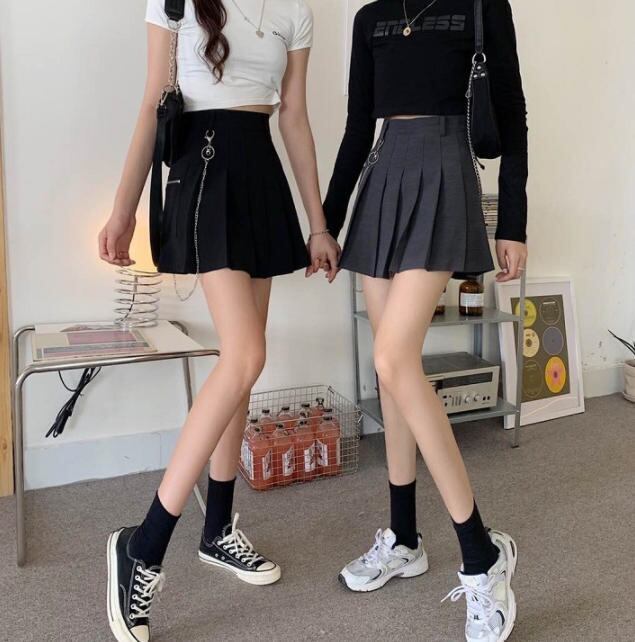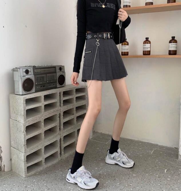 ミニプリーツスカート ハイウエスト チェーン付き ガーリー モード おしゃれ