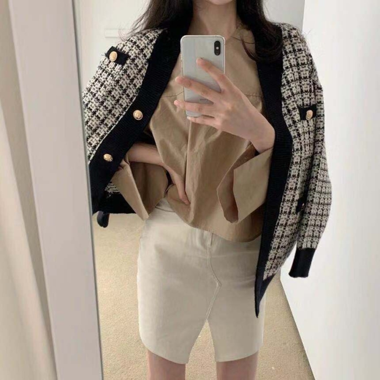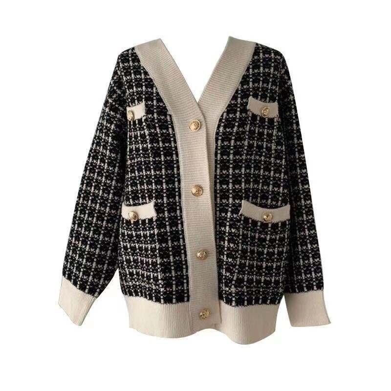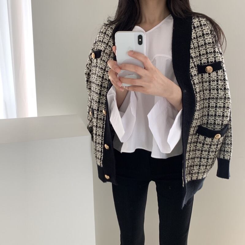 トップス カーディガン ニット 前開き 長袖 チェック ゆったり ざっくり シンプル 大人可愛い お洒落 こなれ感 カジュアル