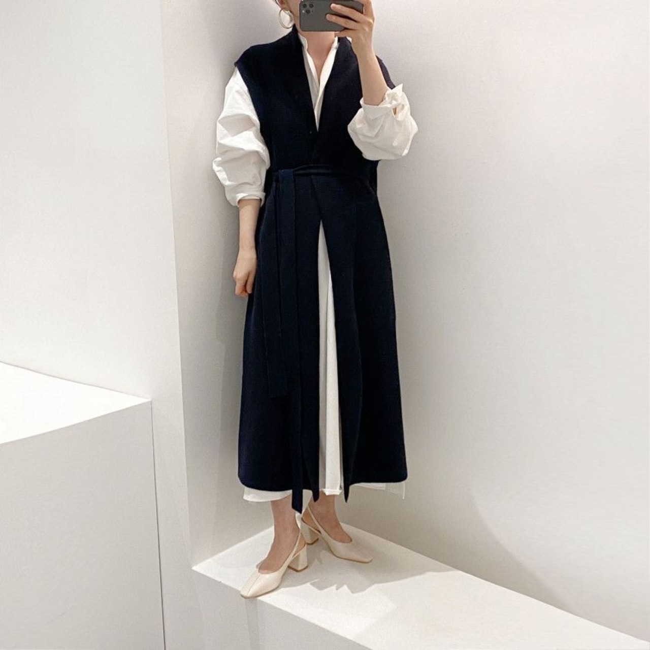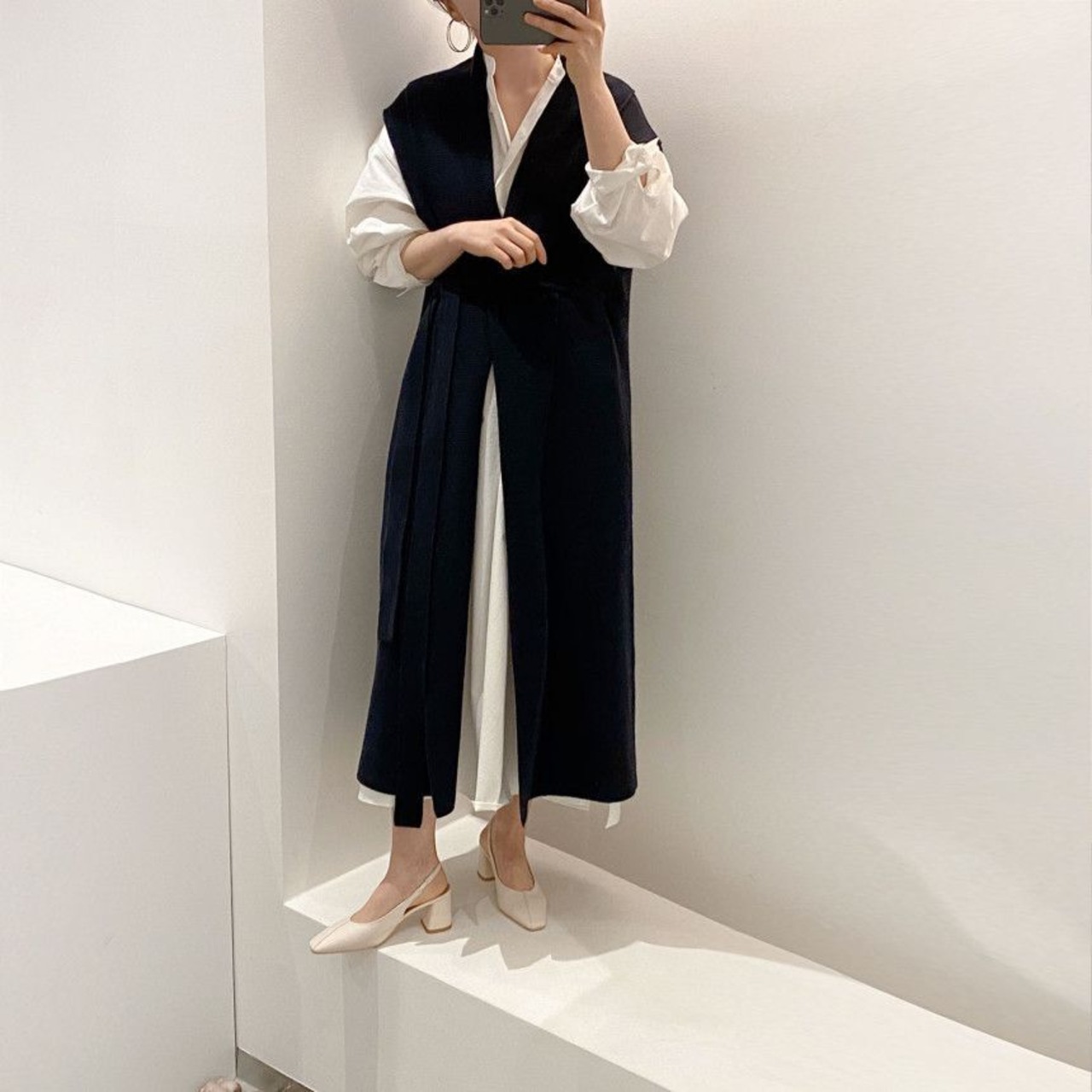 ワンピース シャツワンピ シャツ ブラウス ニット マキシ丈 セット きれいめ 韓国ファッション