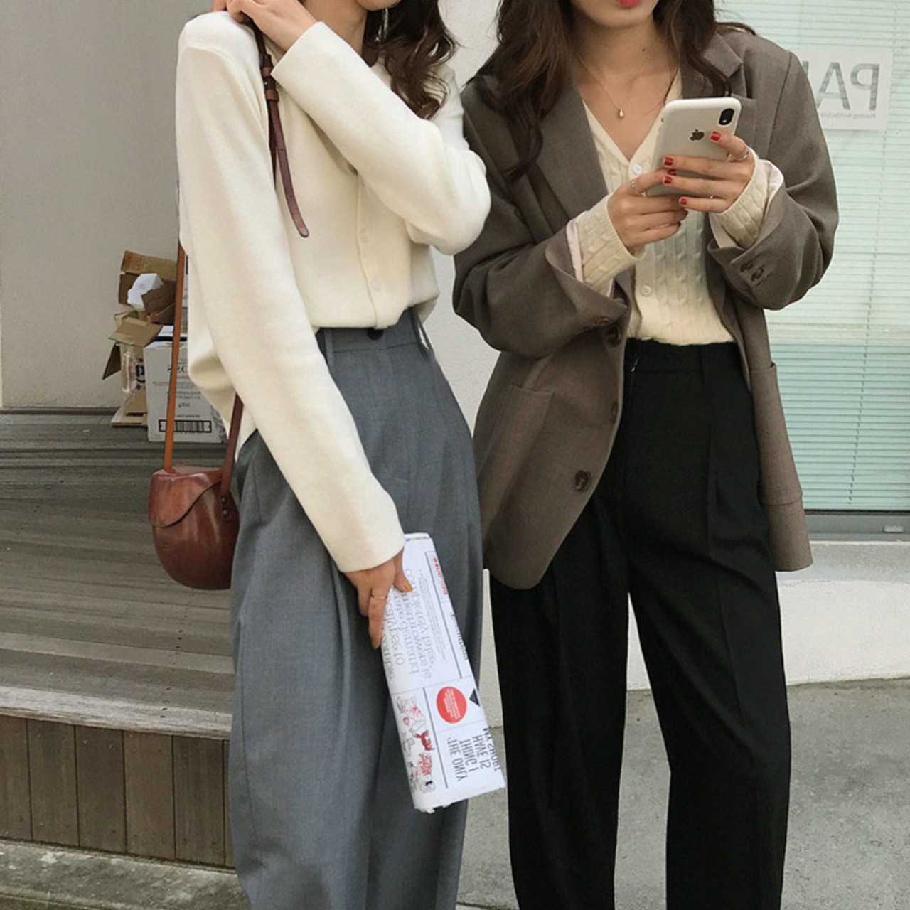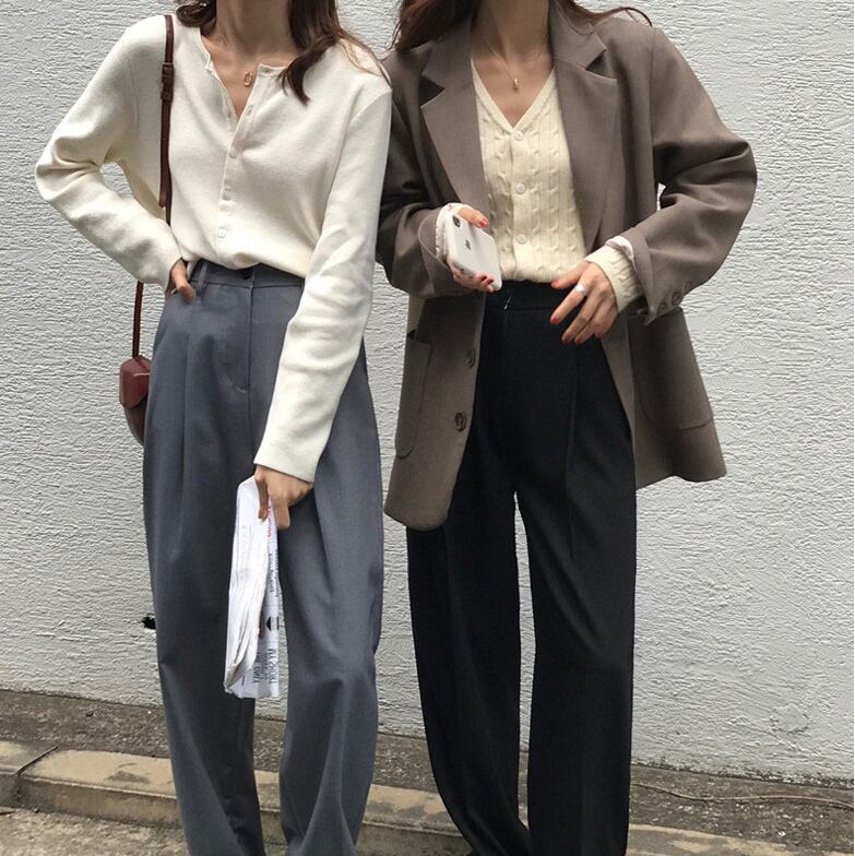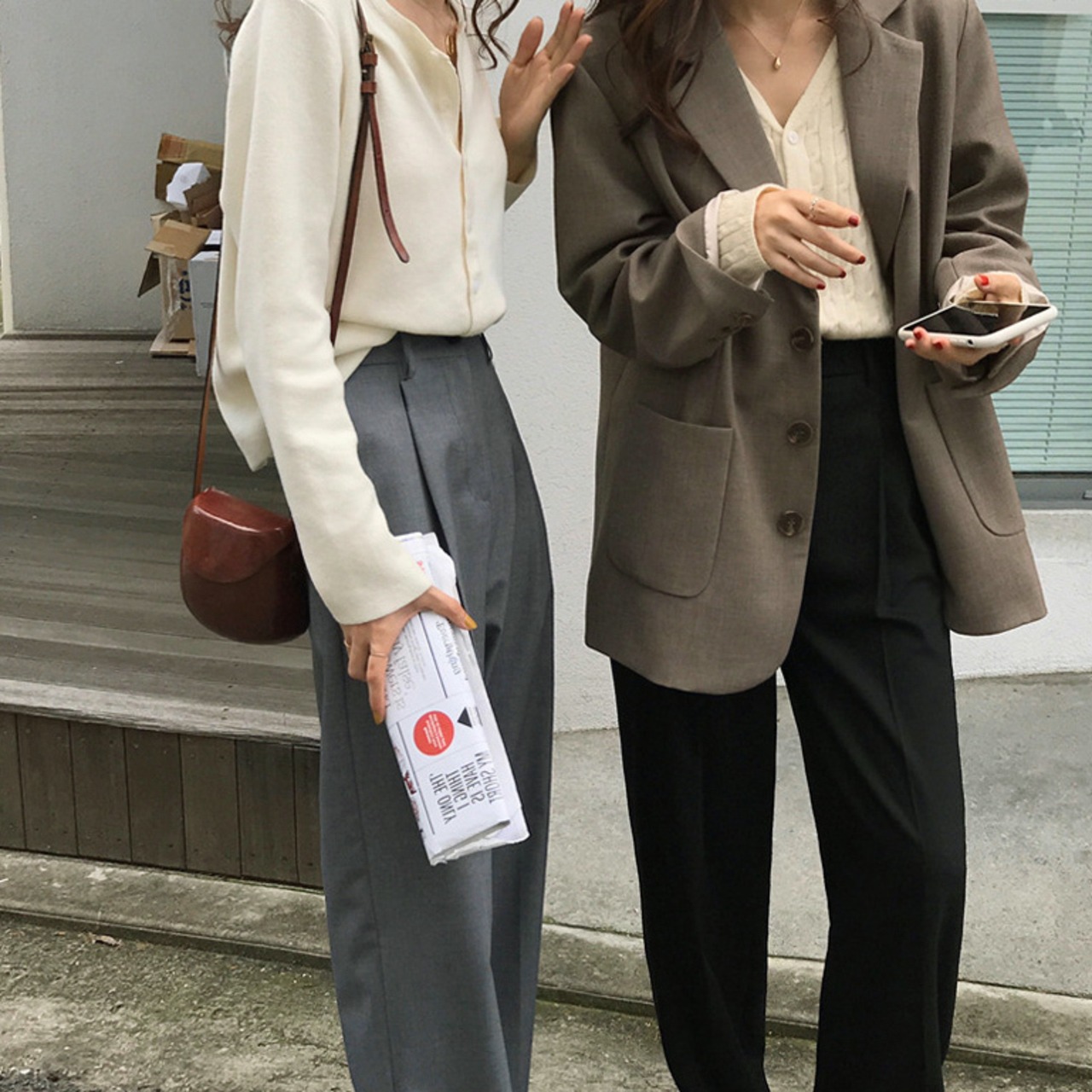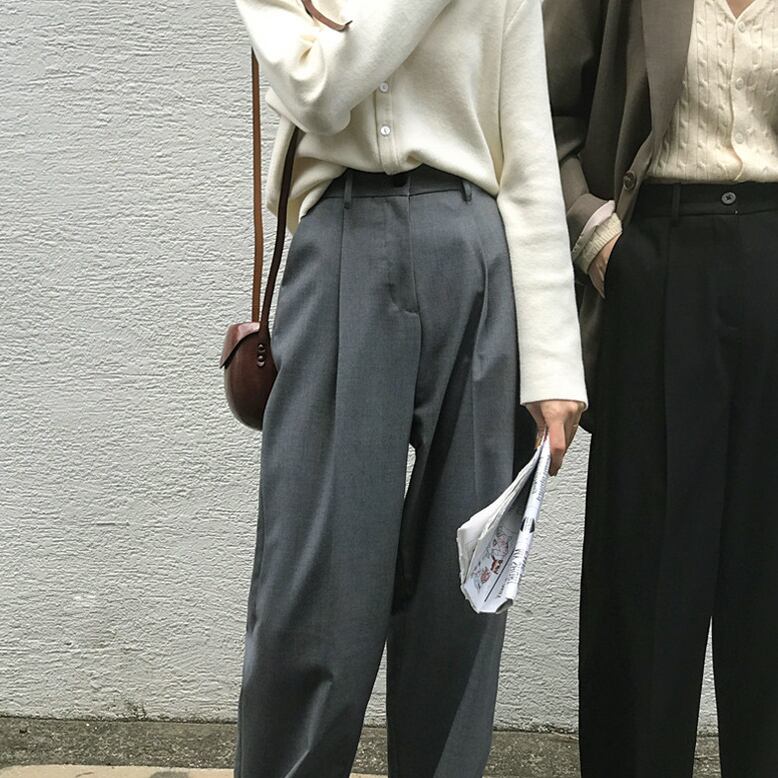 美脚 ストレートタックパンツ♡パンツ ウエストタック おじパン 学生 オフィス デート