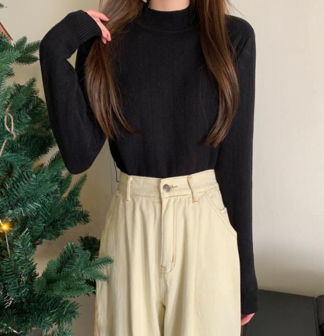 ニット トップス ハイネック 裏起毛 暖かい 防寒 カジュアル 大人可愛い シンプル