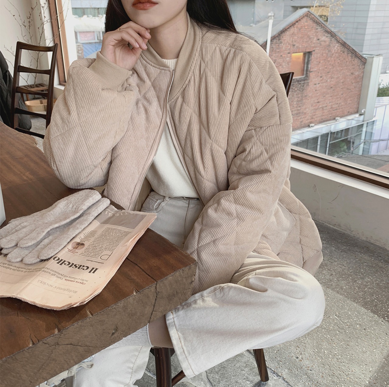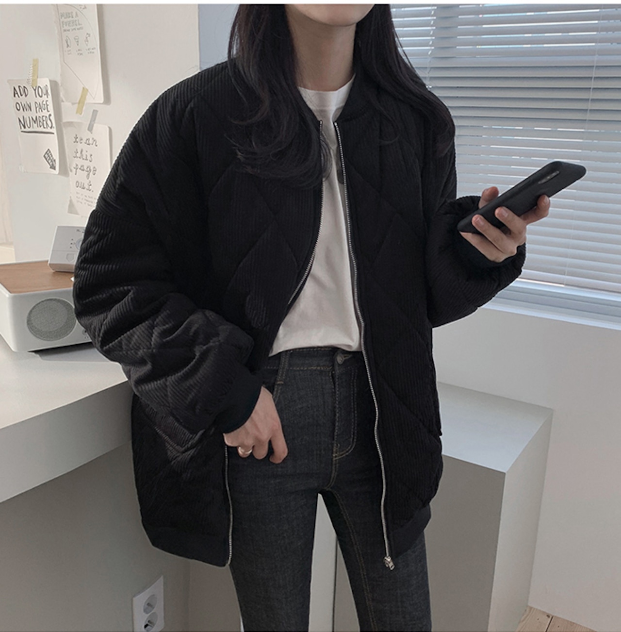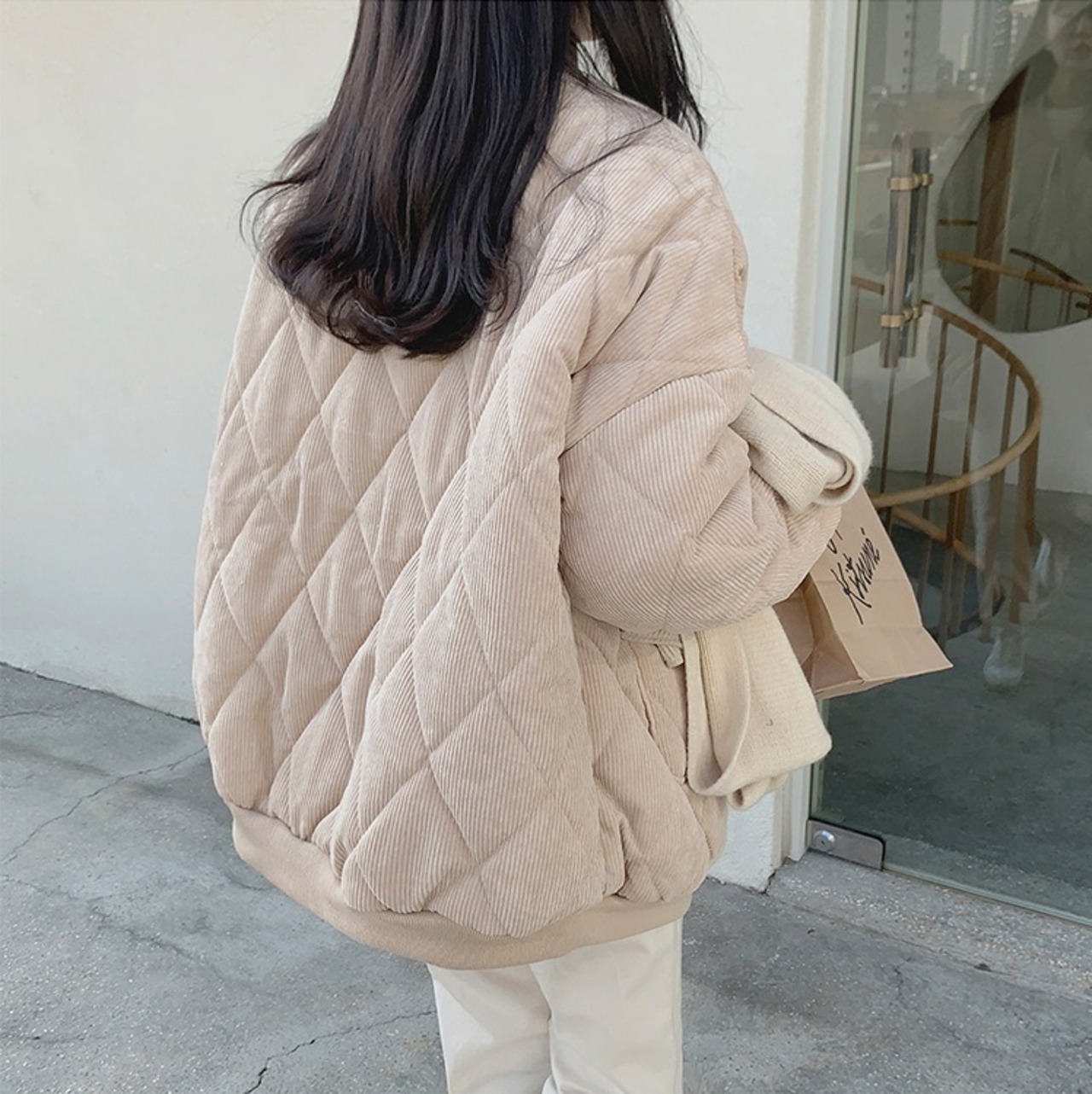 ブルゾン アウター ジャケット キルティング コーデュロイ シンプル モノトーン 韓国ファッション 大人可愛い きれいめ カジュアル
