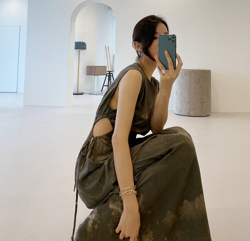 ロングワンピース ノースリーブ 肌見せ フェミニン 大人っぽ きれいめ カジュアル 大人可愛い 韓国ファッション