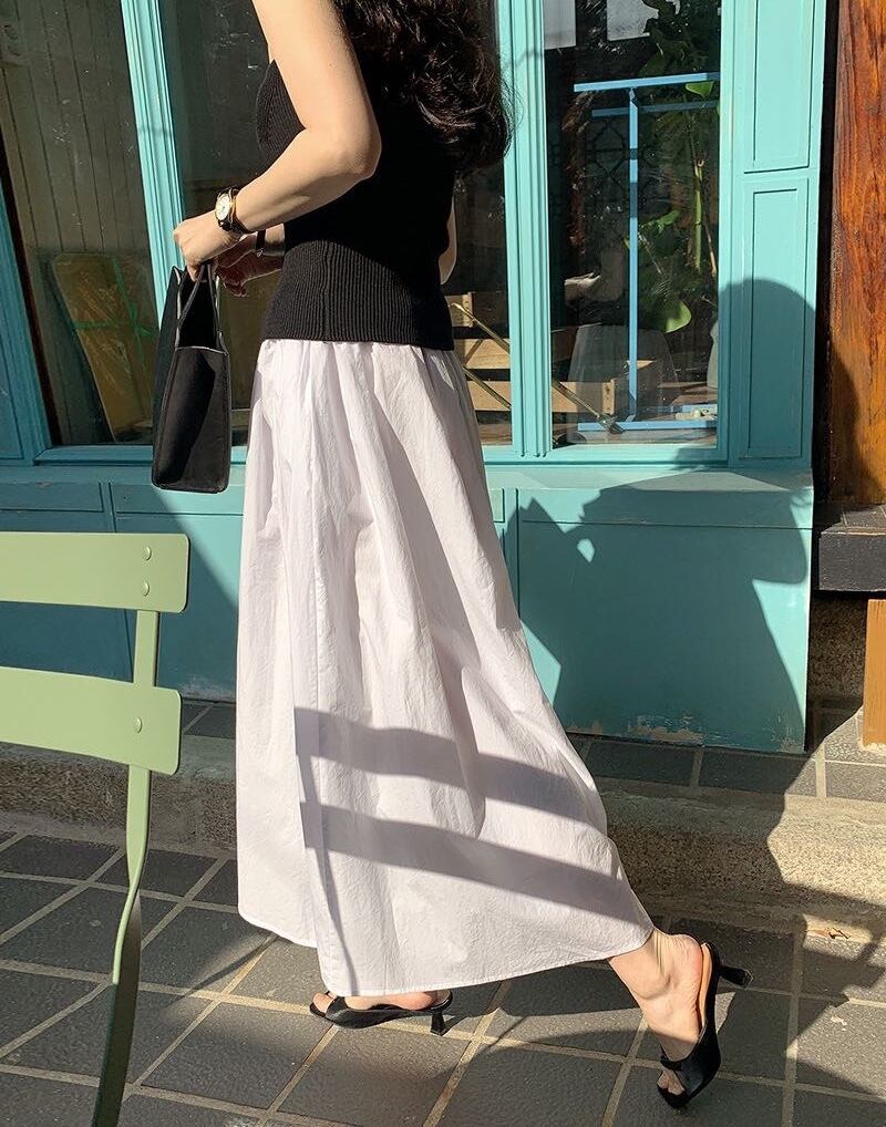 スカート ロング丈 ホワイト 春 夏 デイリー きれいめ カジュアル 大人可愛い 韓国ファッション