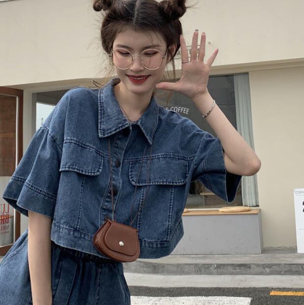 デニム セットアップ トップス ショートパンツ ハイウエスト カジュアル 大人可愛い
