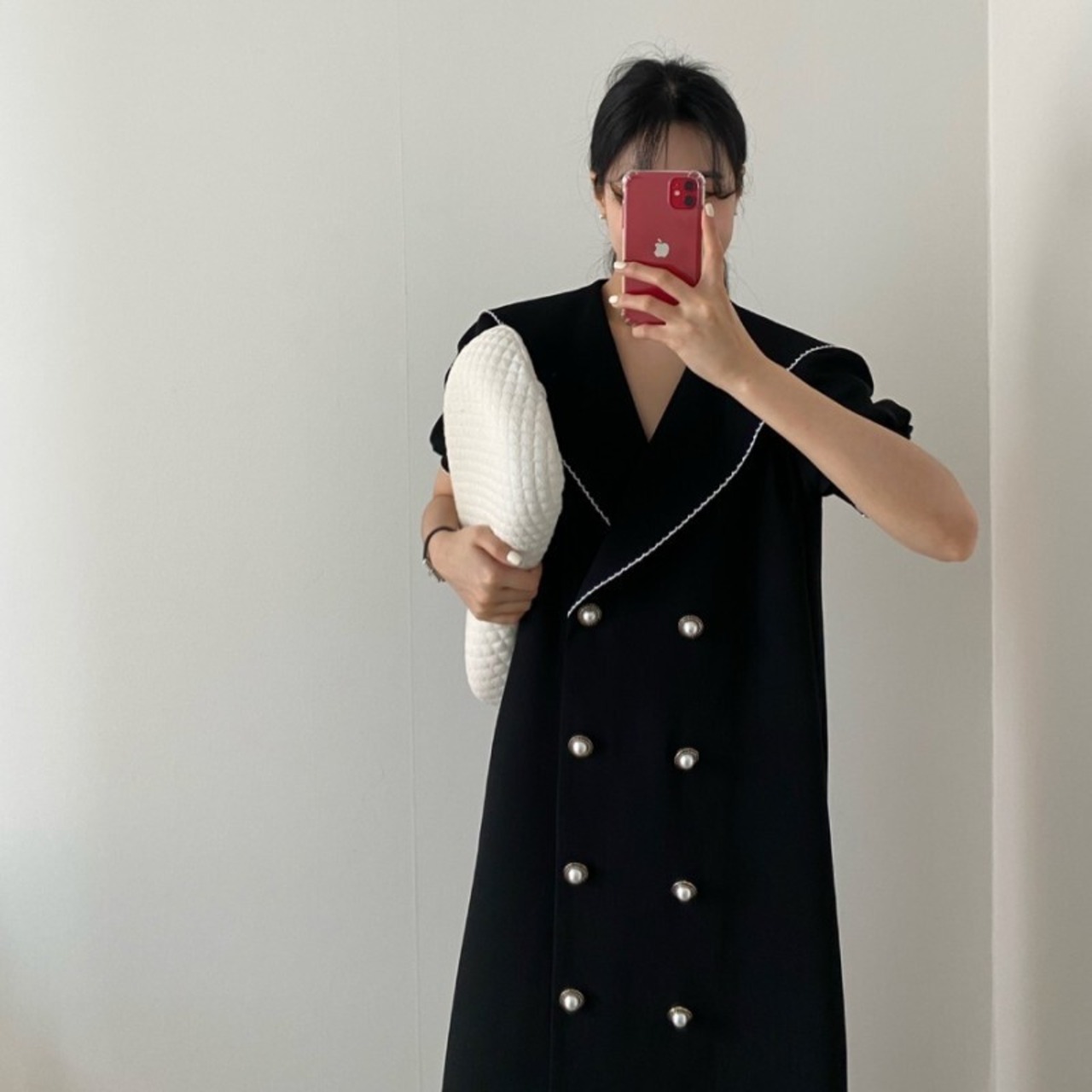 ダブルボタンデザインフレアワンピース。