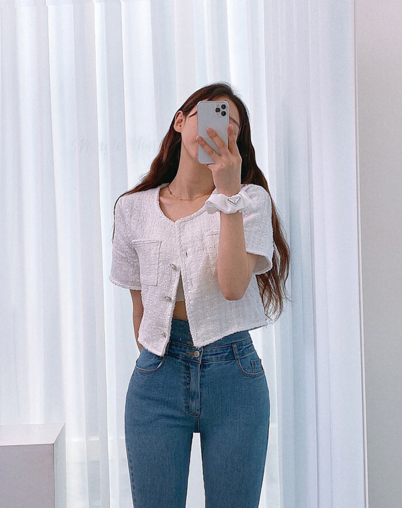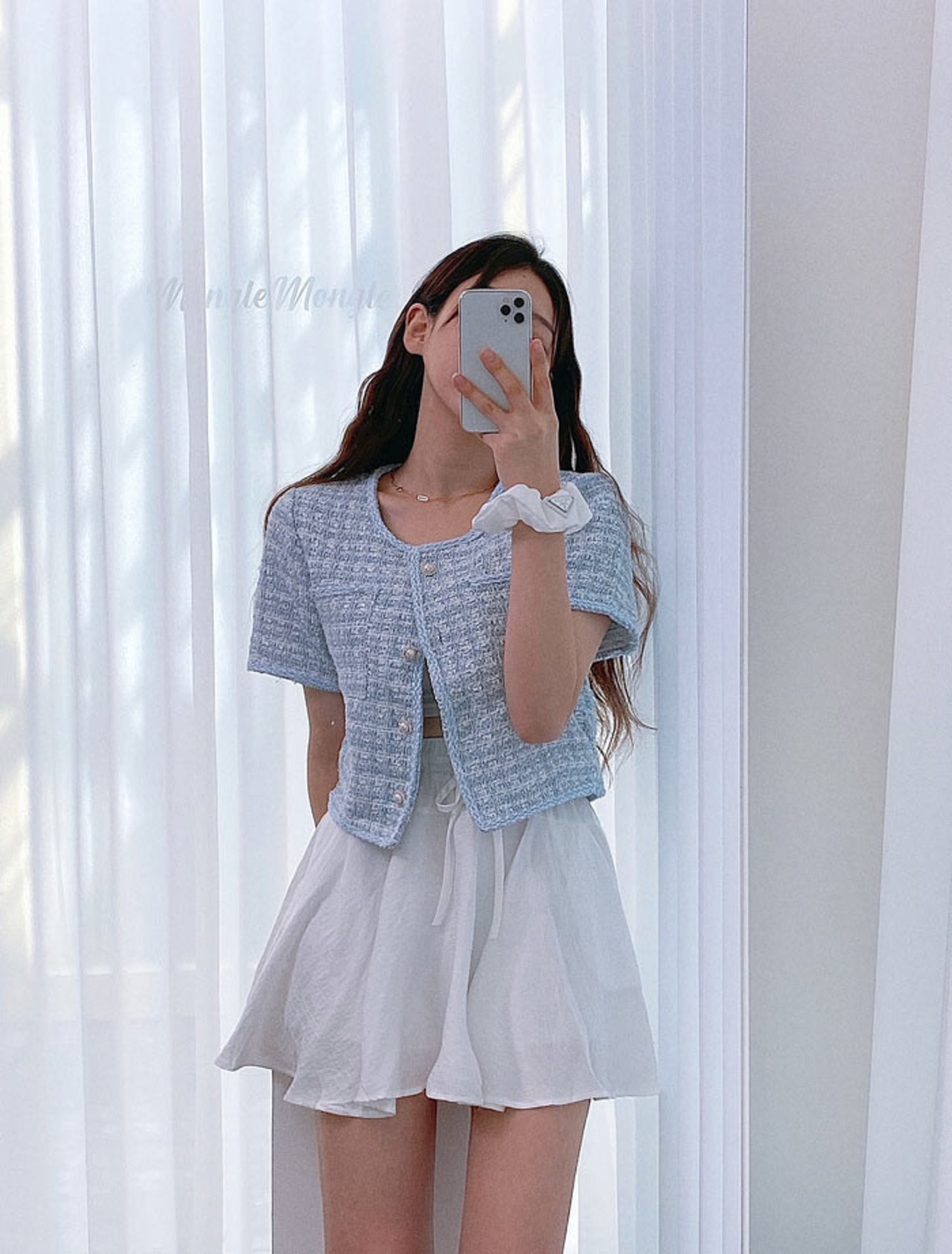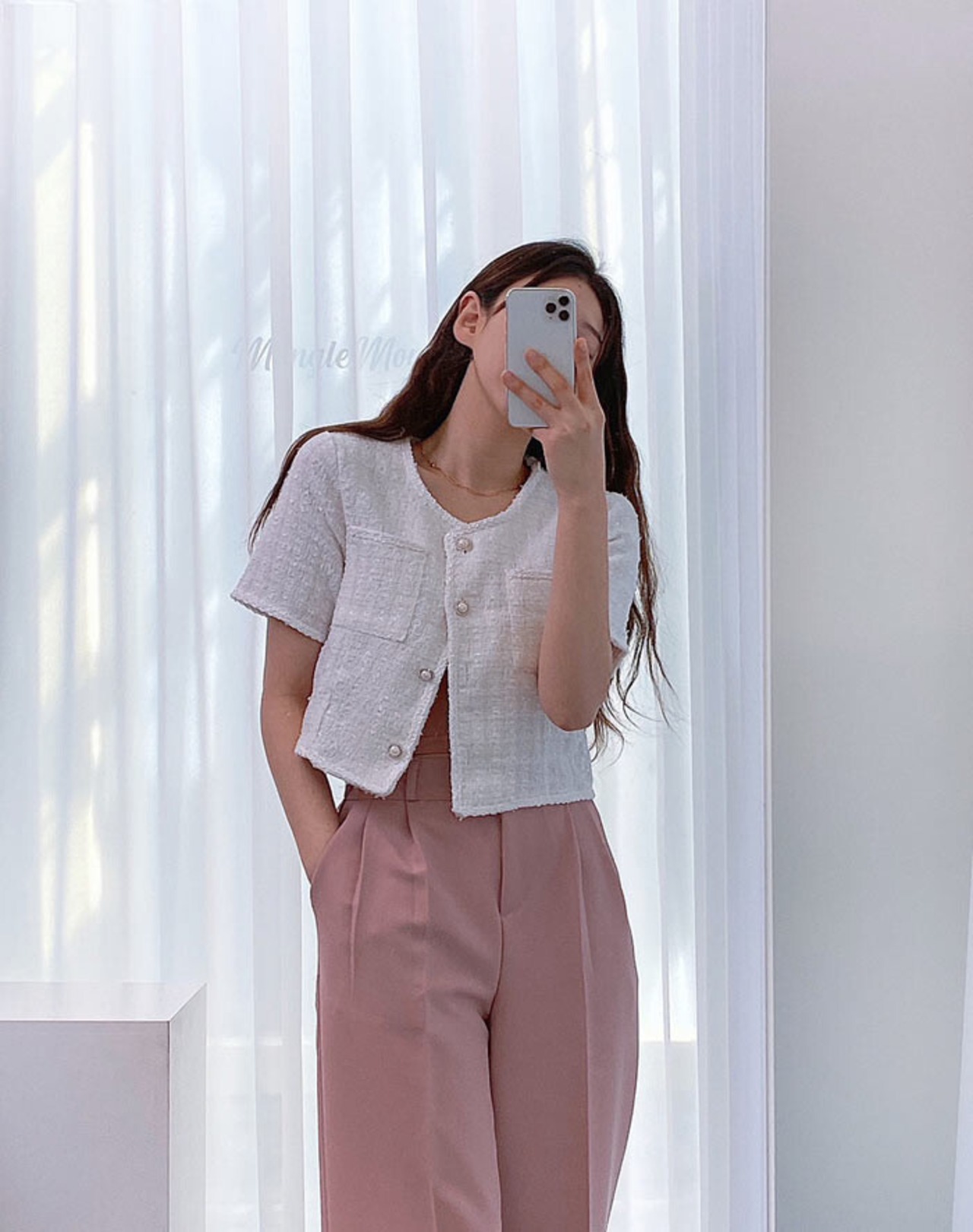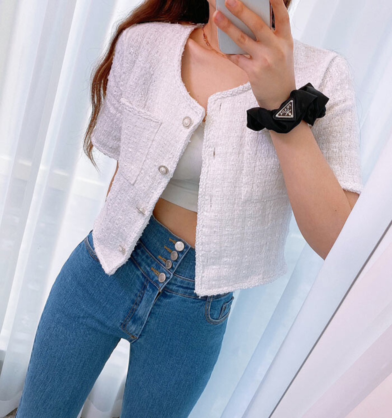 フェミニンなツイードのサマージャケット。