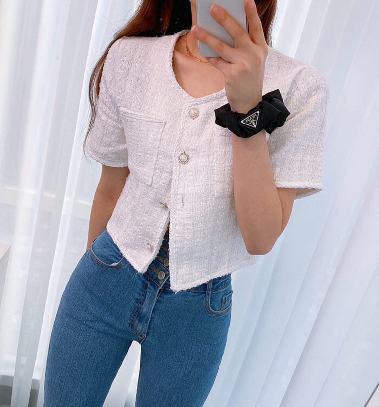ツイード ジャケット 半袖 きれいめ お呼ばれ お出かけ デート フェミニン カジュアル 大人可愛い 韓国ファッション