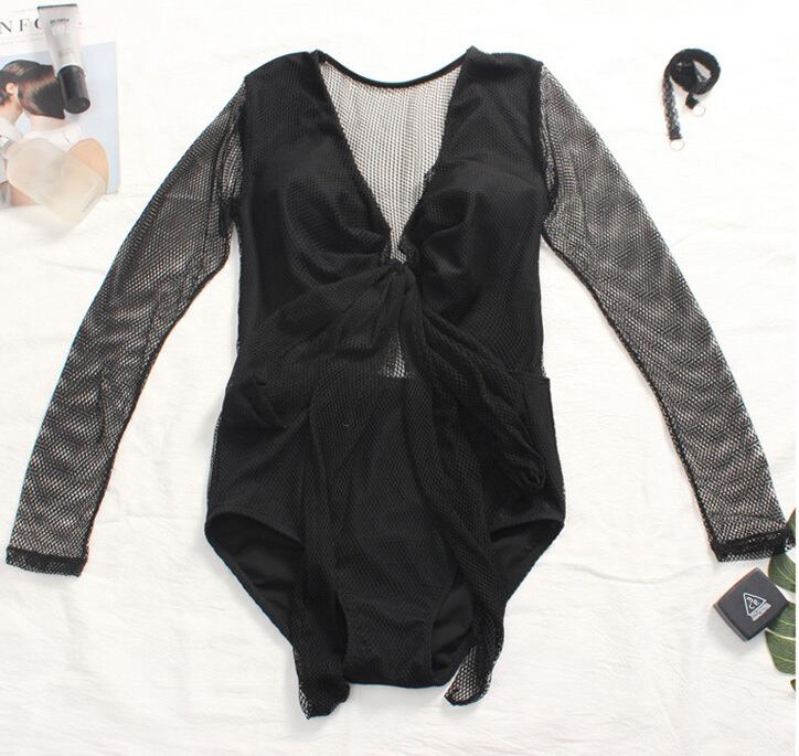 メッシュの袖付きワンピースタイプ水着。