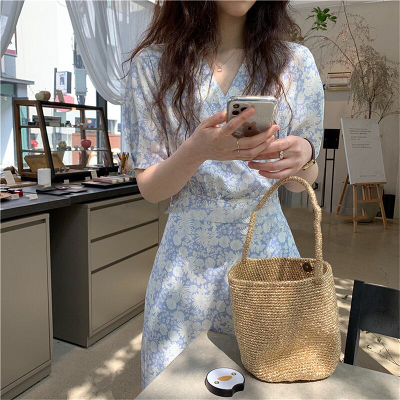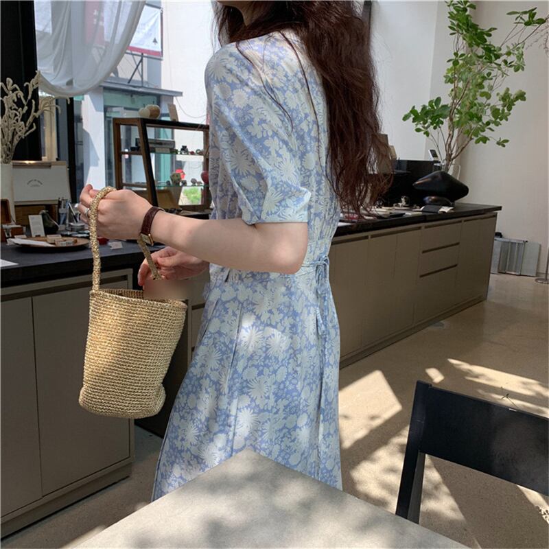 ワンピース ロング丈 カシュクール 花柄 ボタニカル 半袖 レトロ フェミニン きれいめ カジュアル 大人可愛い 韓国ファッション
