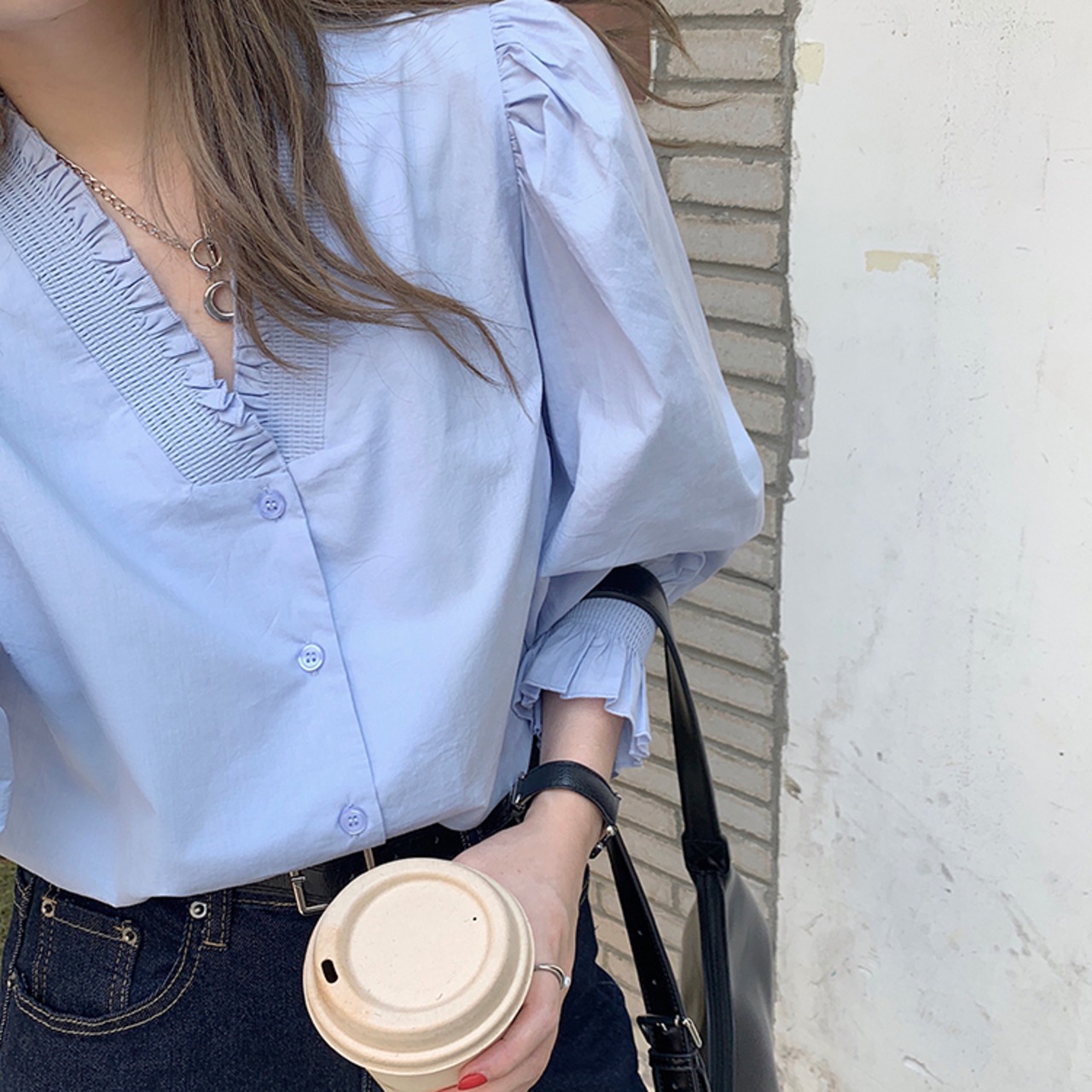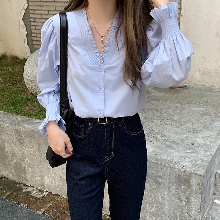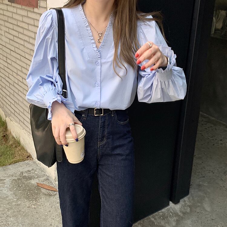 トップス ブラウス シャツ 長袖 フリル フェミニン きれいめ カジュアル 大人可愛い 韓国ファッション