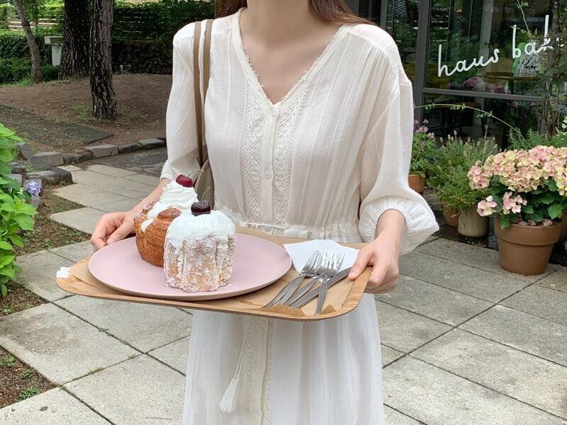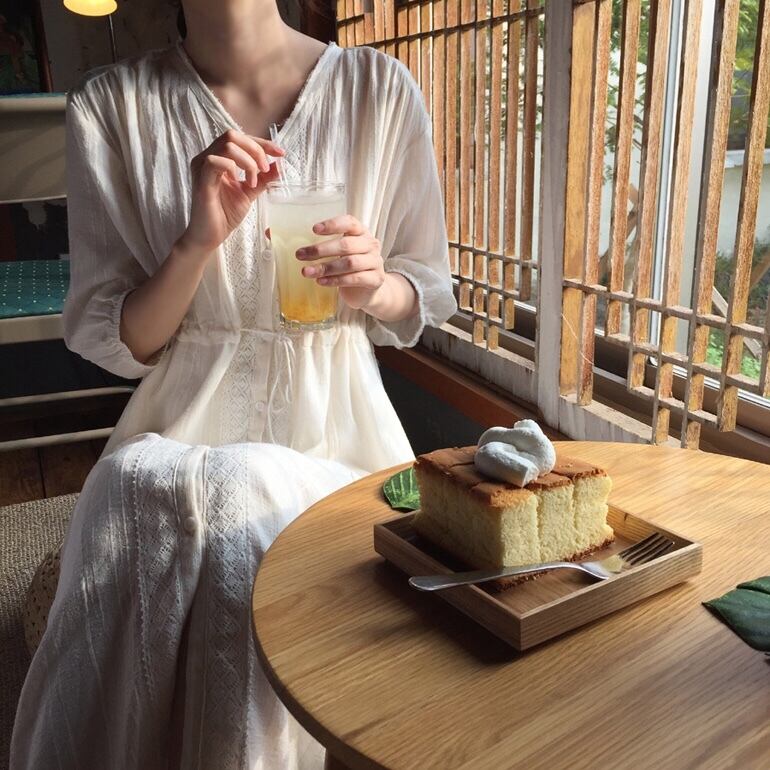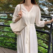 ロング ワンピース 七分袖 森ガール レトロ ガーリー フェミニン きれいめ カジュアル 大人可愛い 韓国ファッション