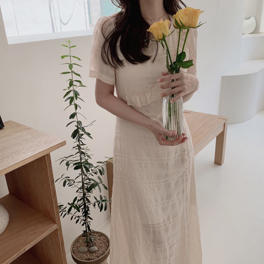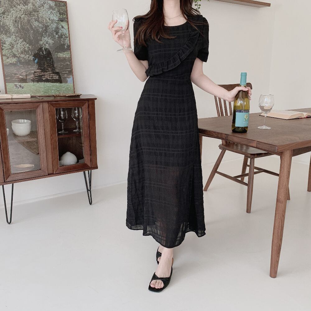 ロング ワンピース フリル シフォン チェック デート きれいめ カジュアル 大人可愛い 韓国ファッション