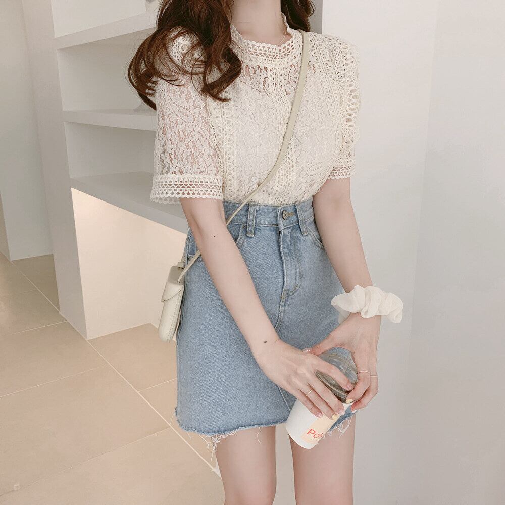 トップス 半袖 レース フェミニン ガーリー ブラウス 韓国ファッション 大人可愛い きれいめ カジュアル
