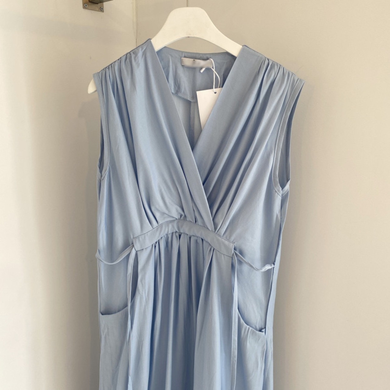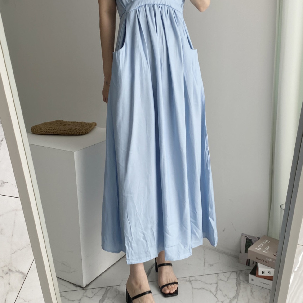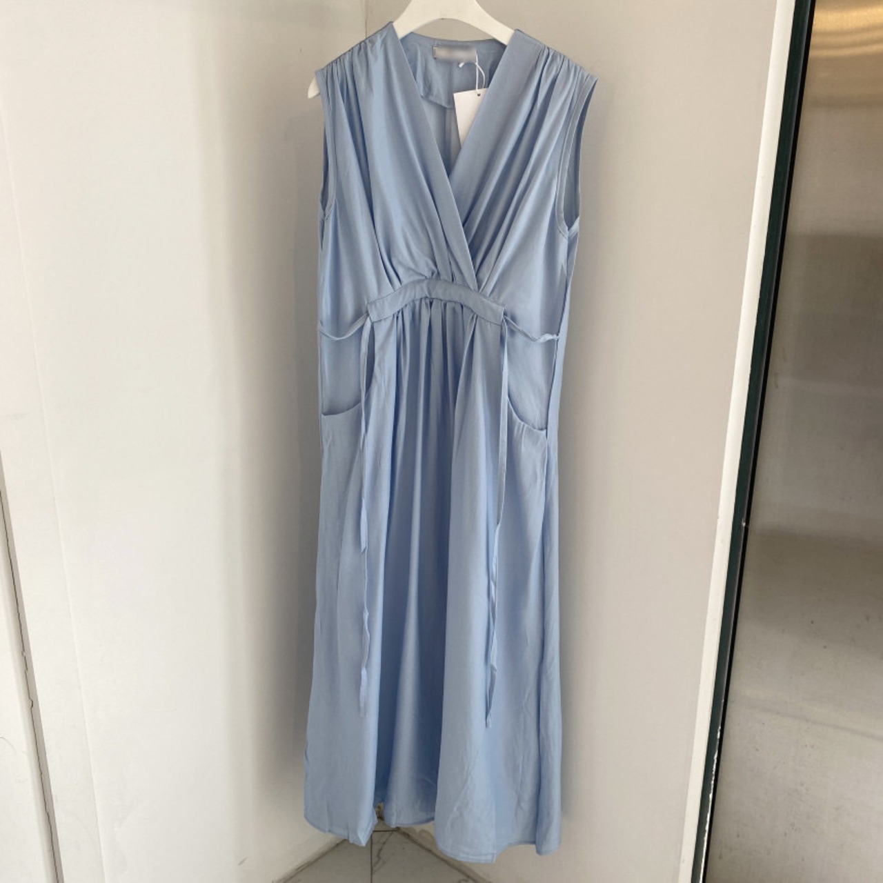 ロング ワンピース ノースリーブ フェミニン Vネック ウエストマーク きれいめ カジュアル 大人可愛い 韓国ファッション