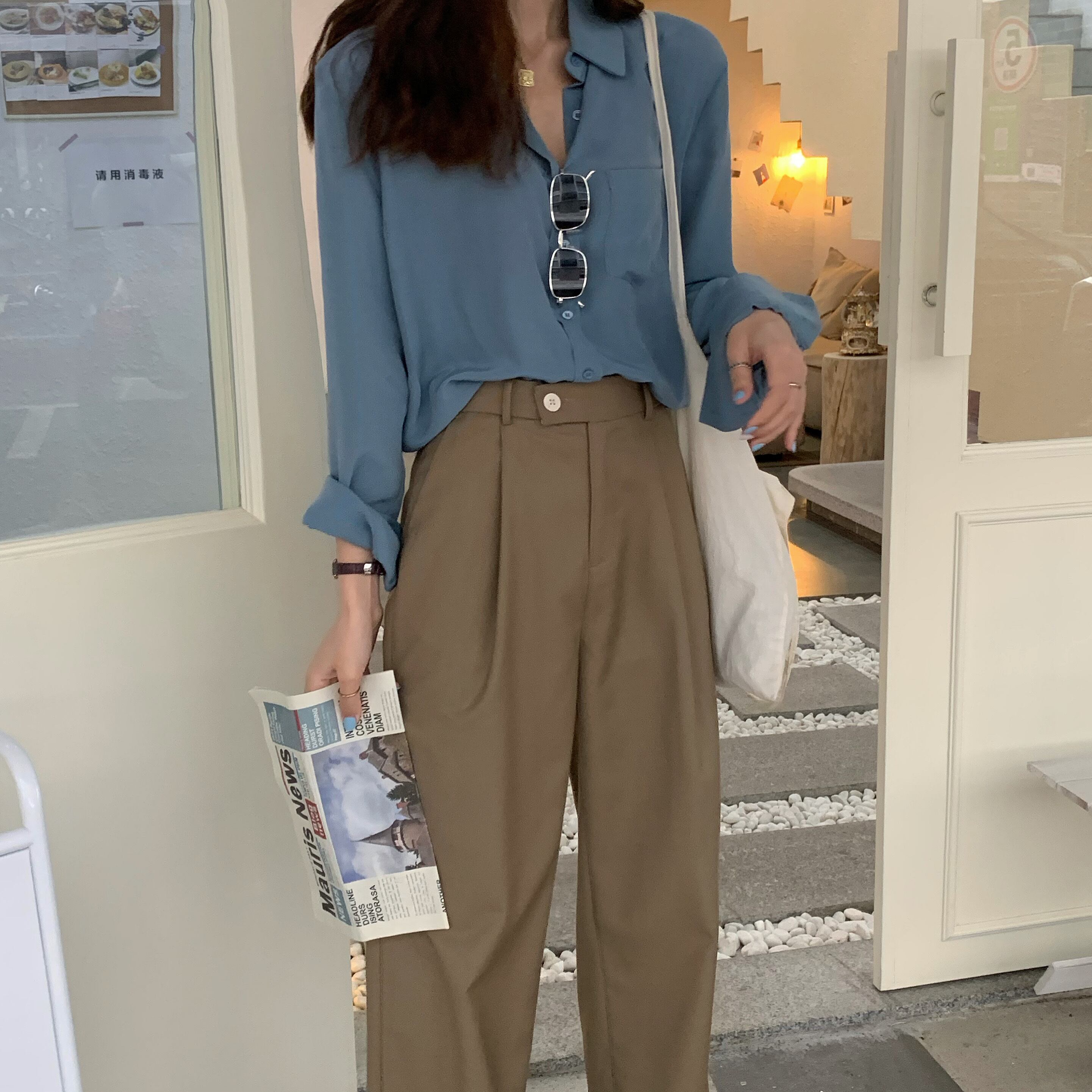 ボトムス ハイウエスト ストレート パンツ スラックス きれいめ カジュアル 大人可愛い 韓国ファッション