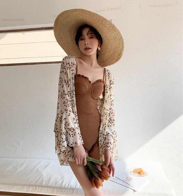 水着 2点セット ワンピース 羽織り フリル カーディガン スイムウェア 海 ビーチ リゾート プール レジャー 大人可愛い 韓国ファッション