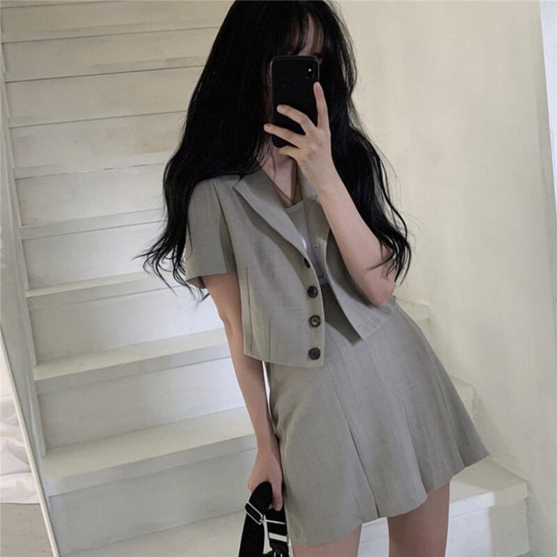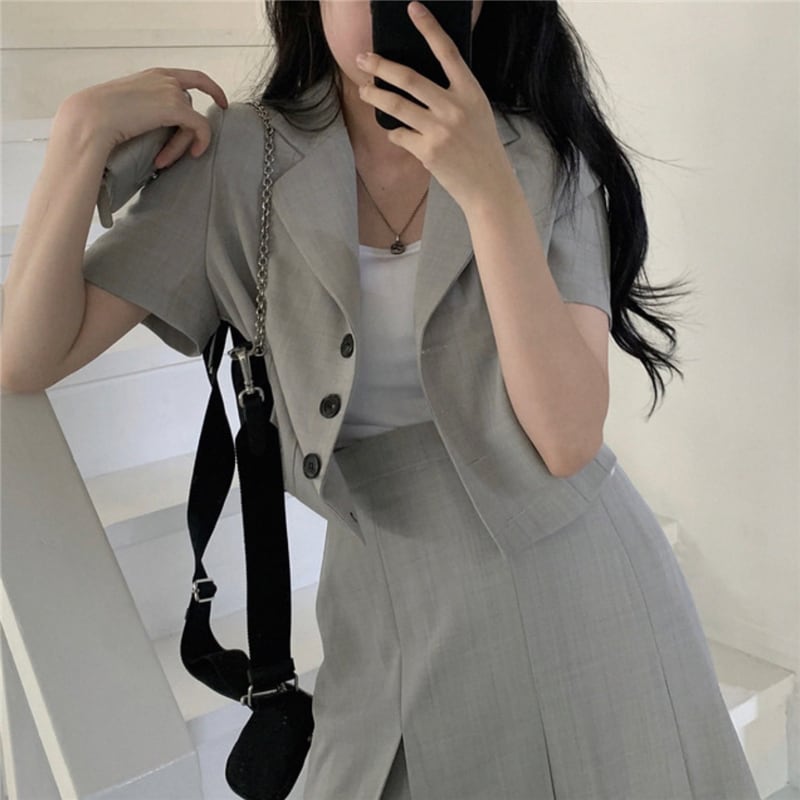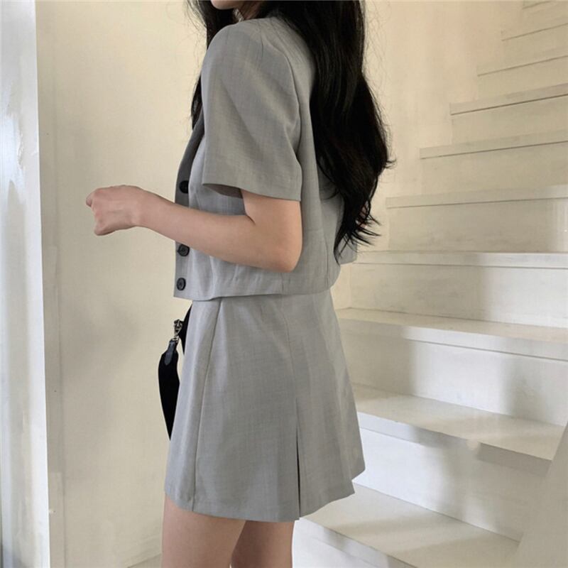 セットアップ ジャケット 半袖 ミニ スカート ハイウエスト きれいめ カジュアル 大人可愛い 韓国ファッション