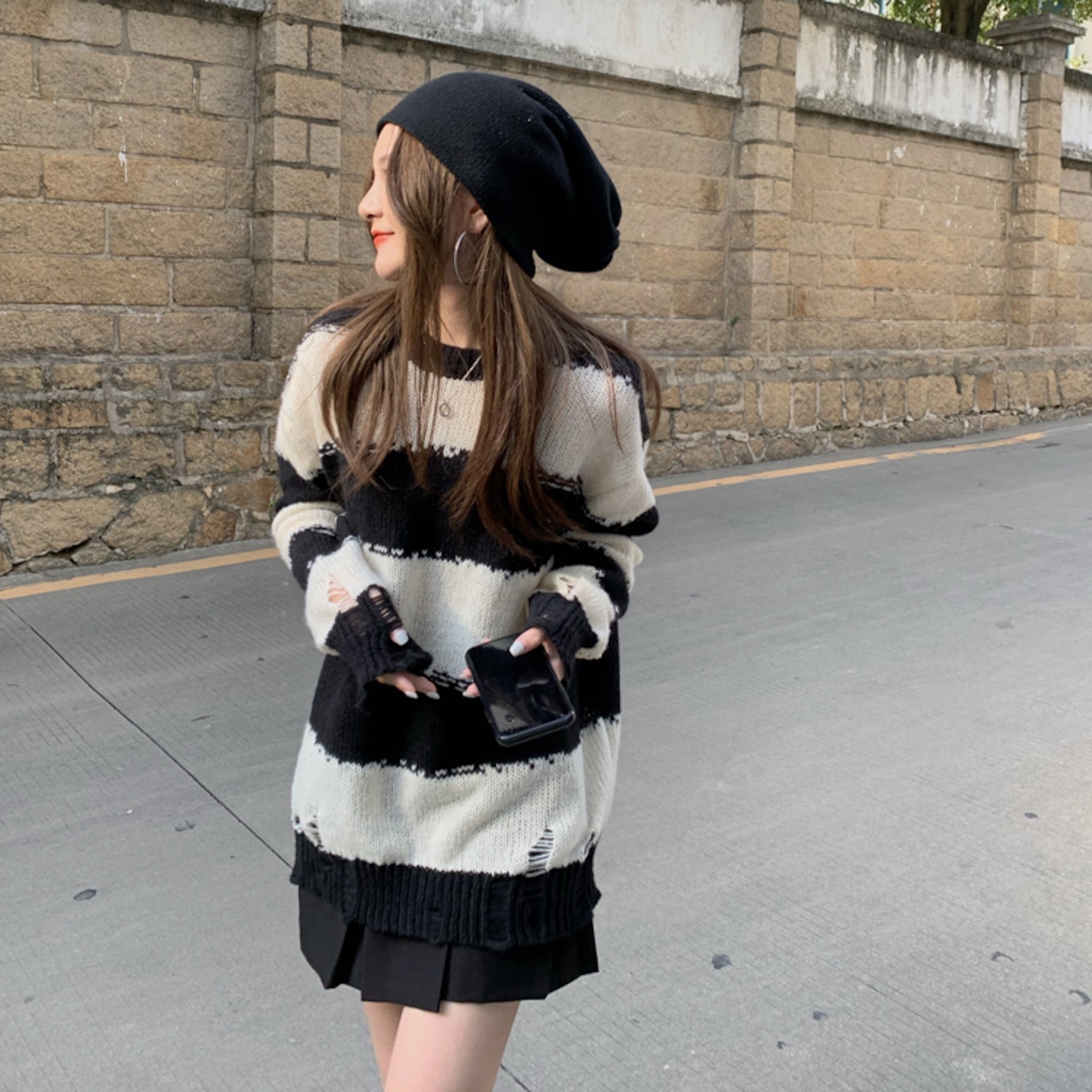 ニット ボーダー トップス ゆったり カジュアル 古着っぽ レトロ 秋 韓国ファッション