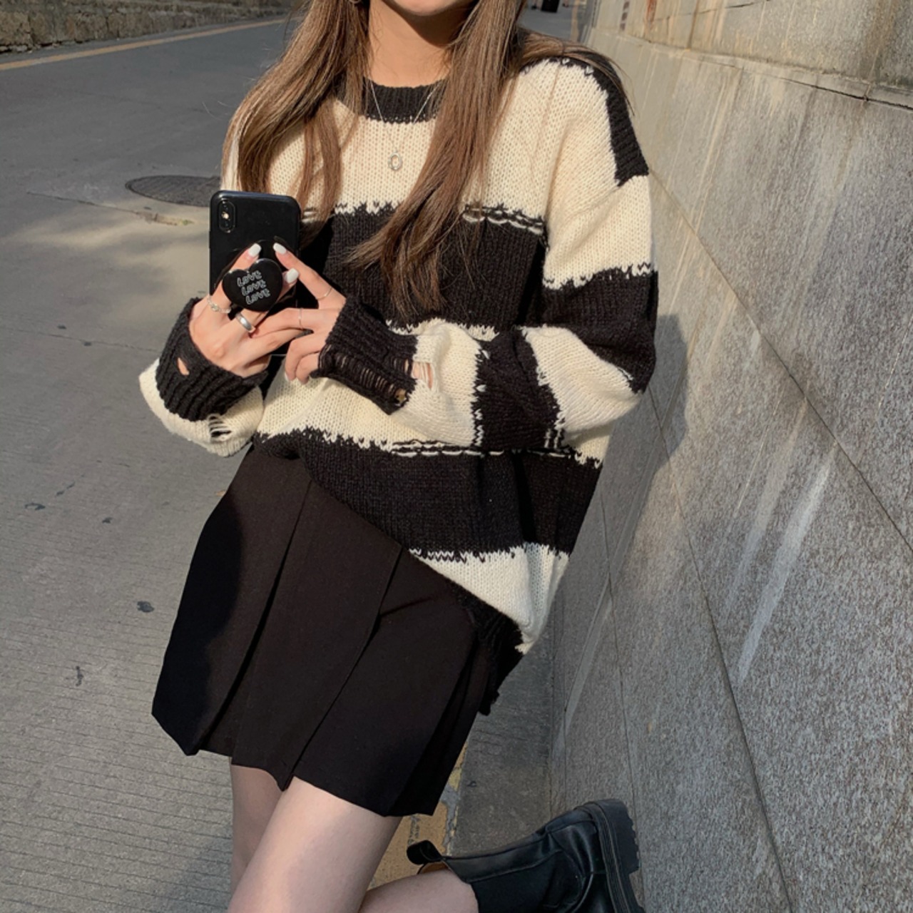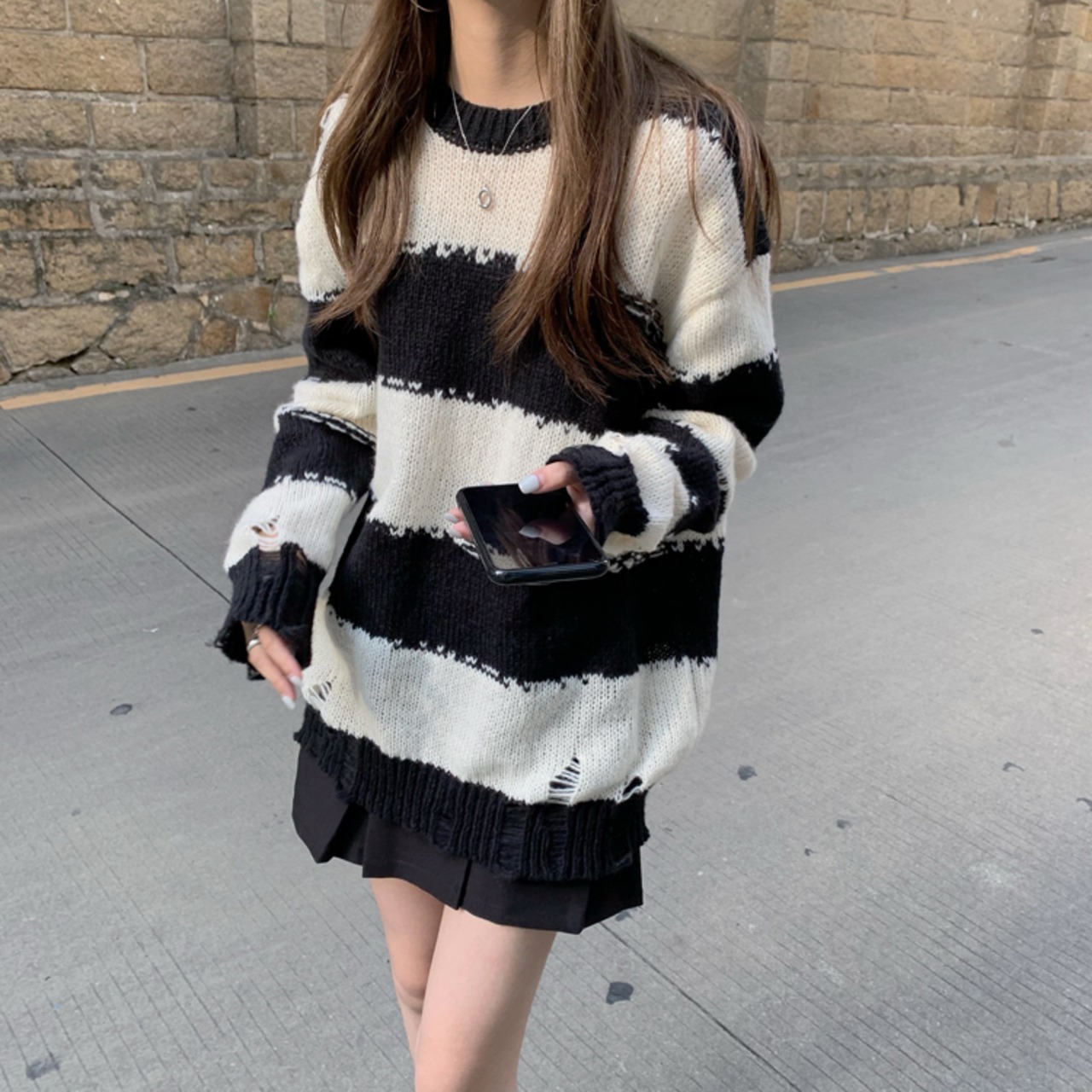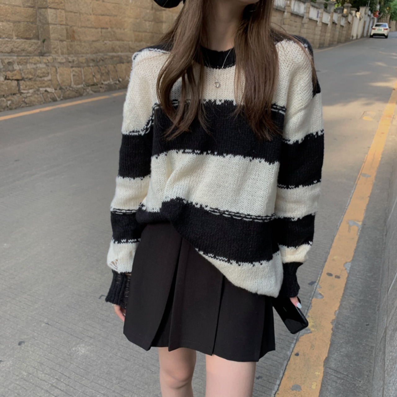 ルーズなシルエットがかわいいボーダーニット。
