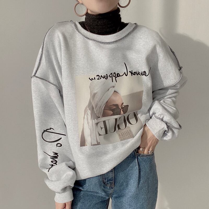 スウェット トップス ロゴ プリント 個性派 着まわし レトロ オシャレ ゆったり カジュアル 大人可愛い 韓国ファッション