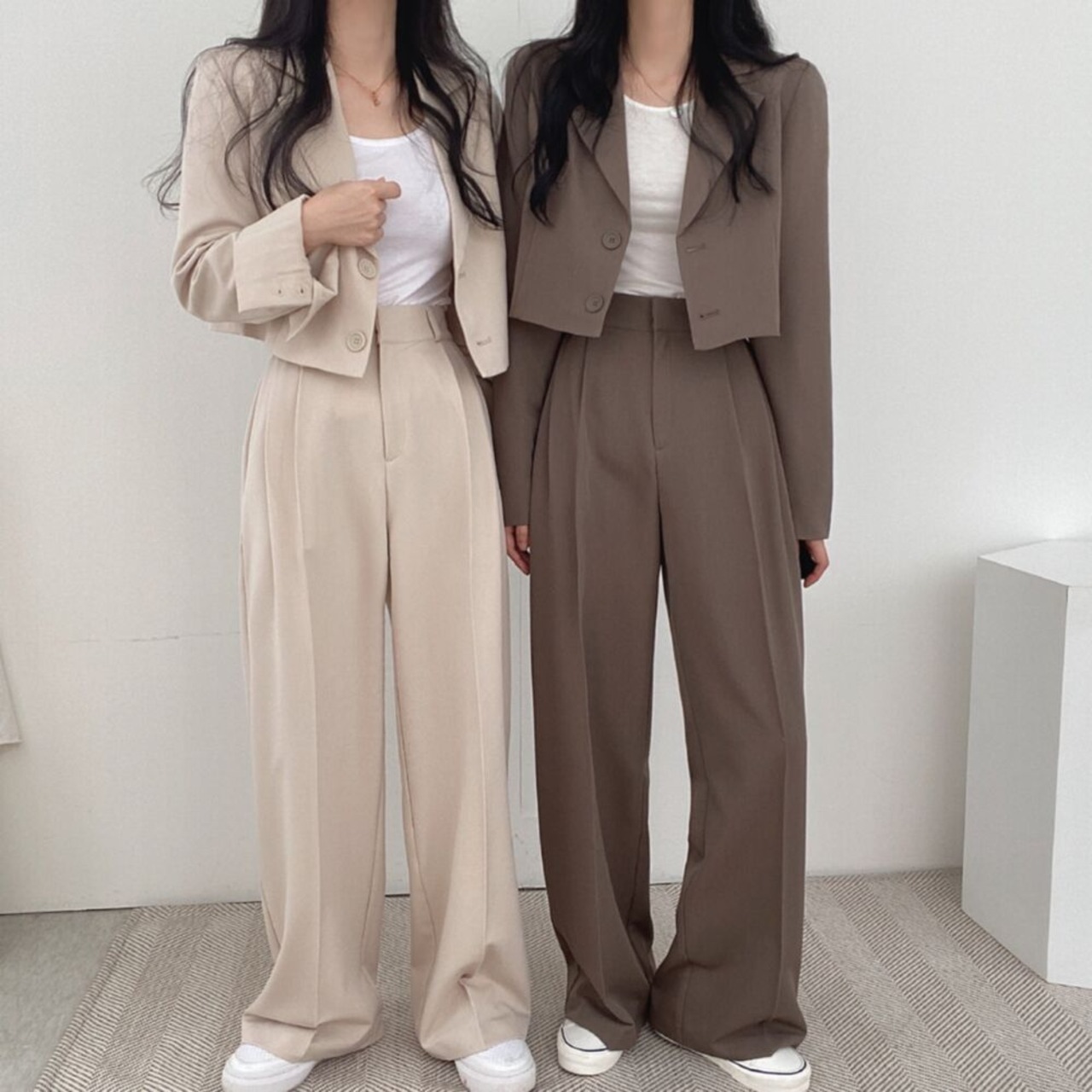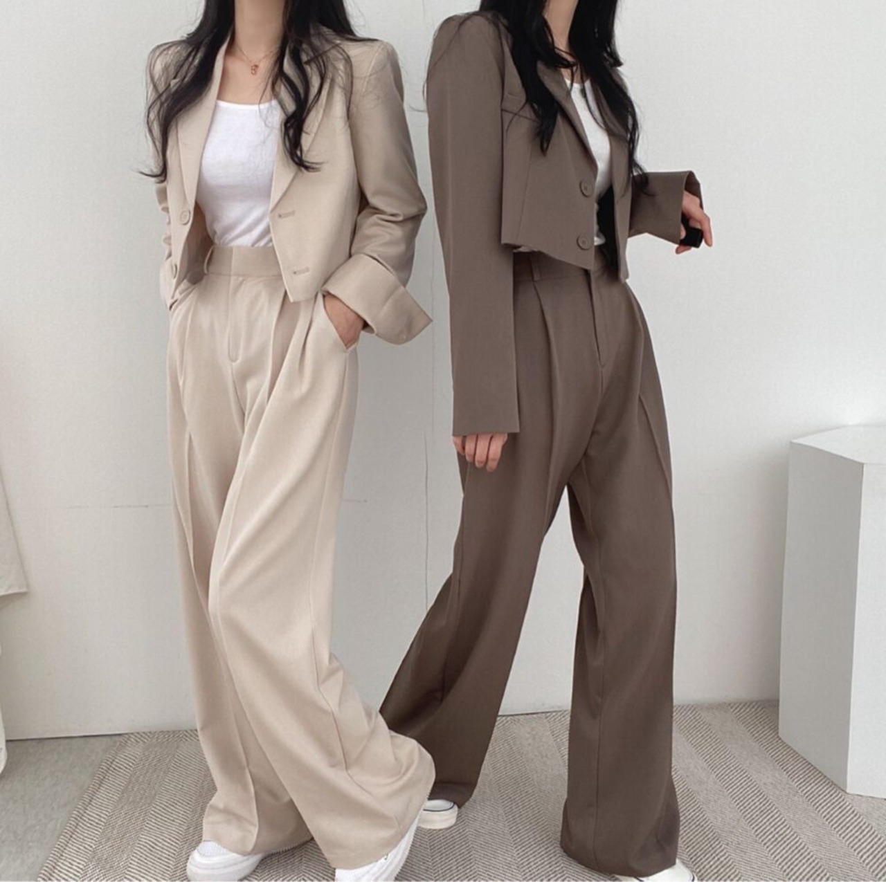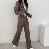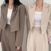 【大人気セットアップ】 ジャケット ショート丈 ハイウエスト パンツ ゆったり スタイルアップ 韓国ファッション