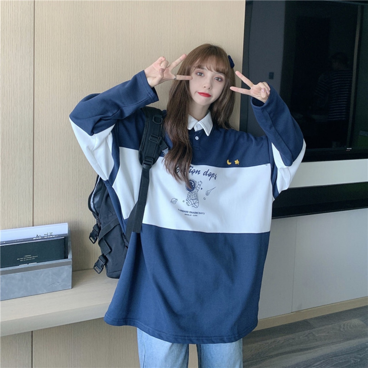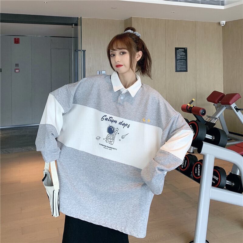 オーバーサイズ トップス ポロ 襟 スウェット バイカラー ストリート カジュアル ゆったり 韓国ファッション