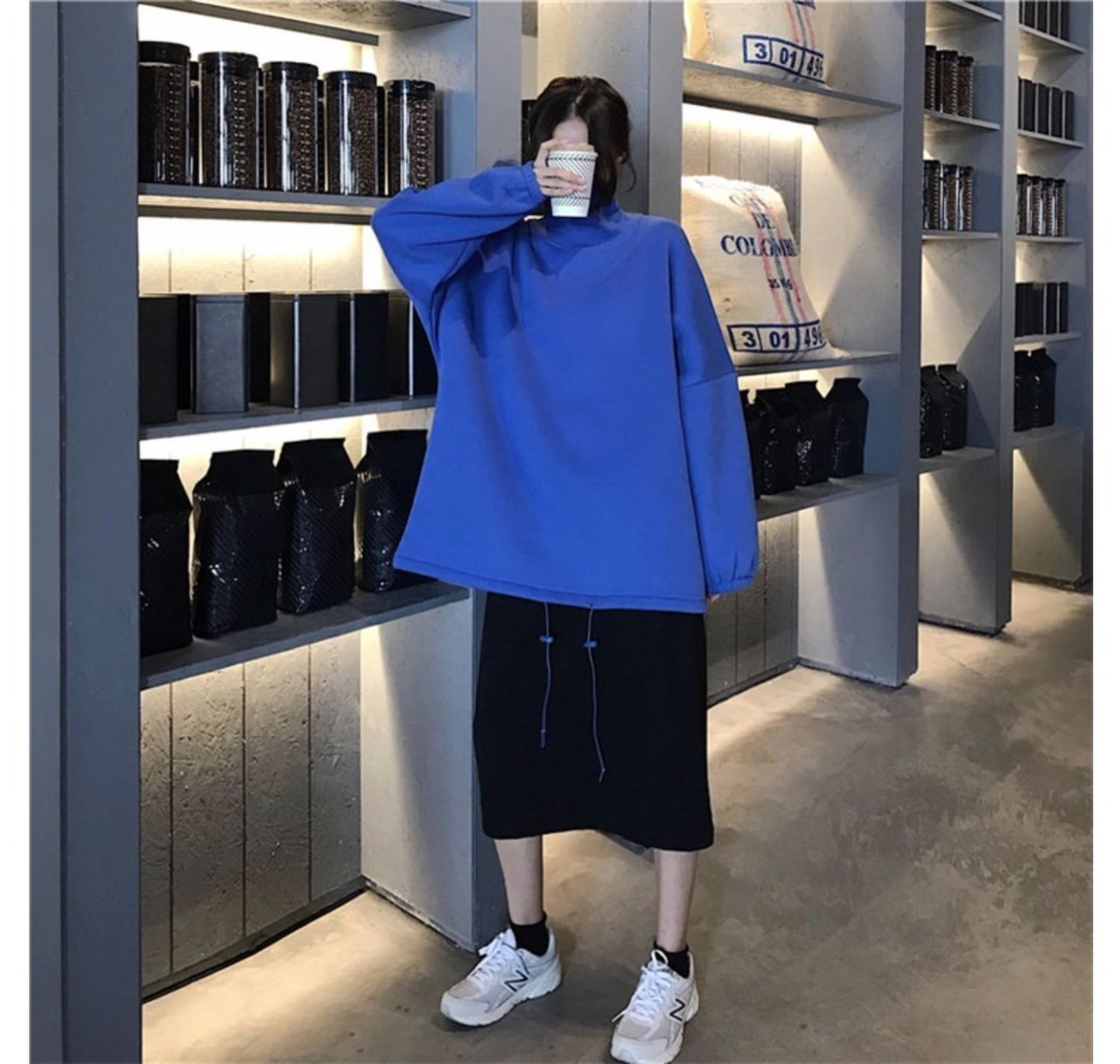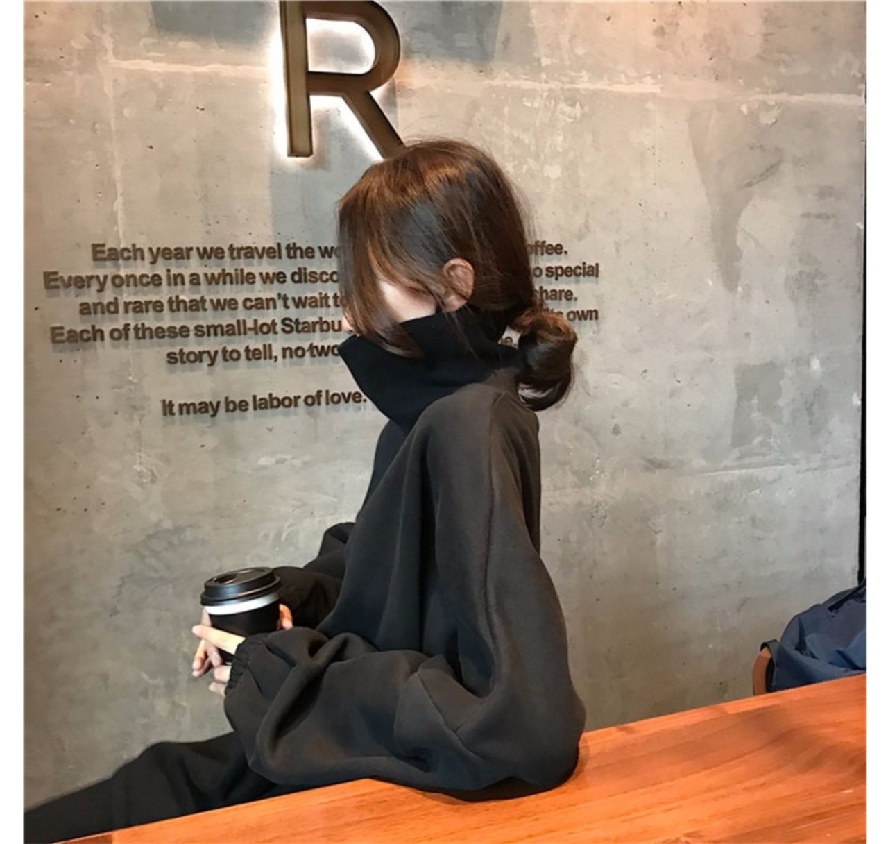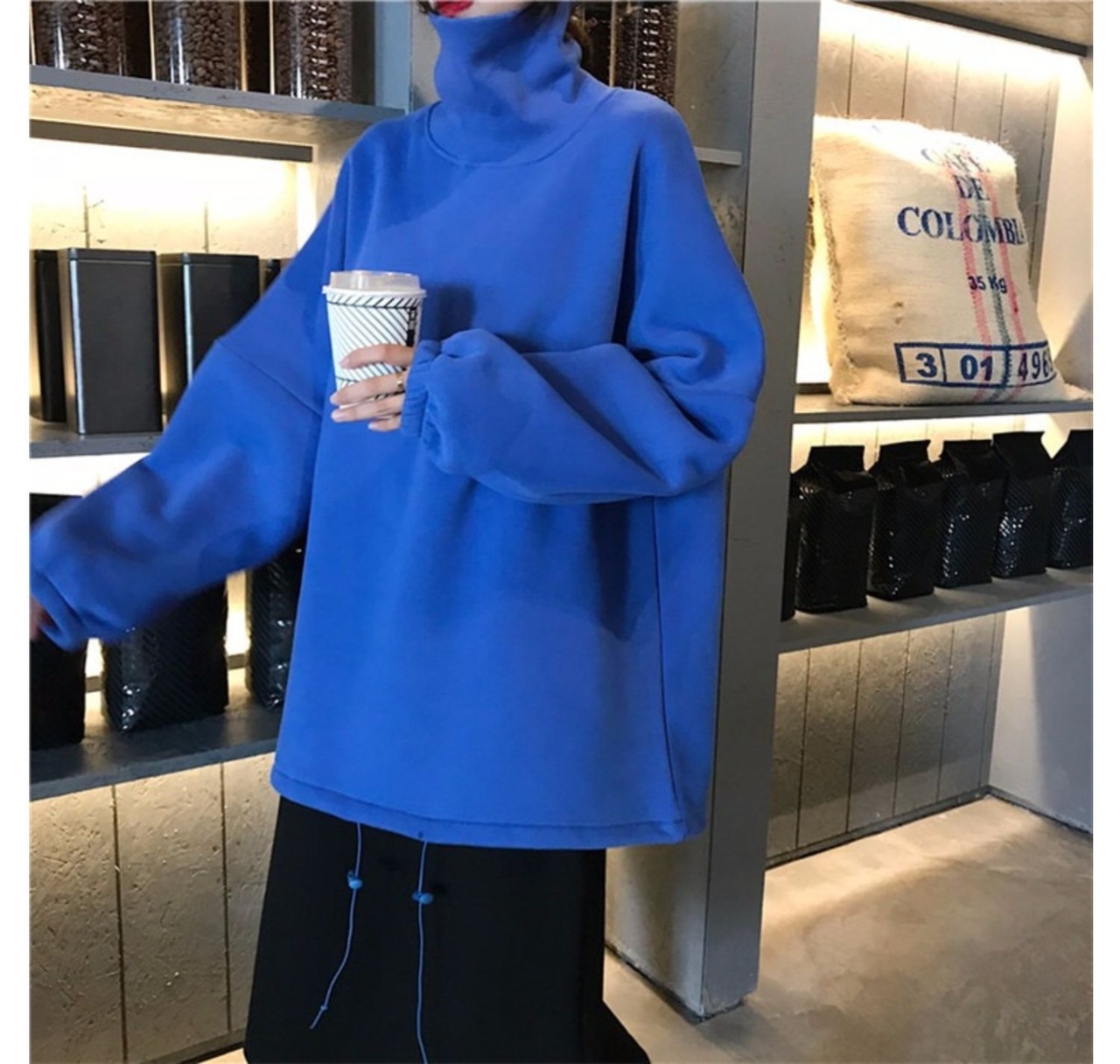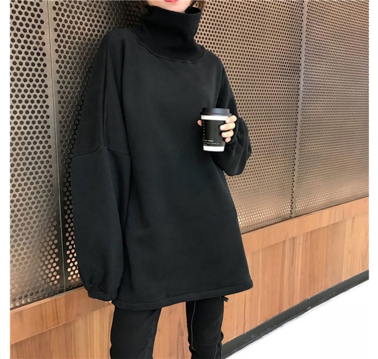 トップス スウェット 長袖 ハイネック タートルネック 小顔 オーバーサイズ ゆったり カジュアル シンプル 韓国ファッション