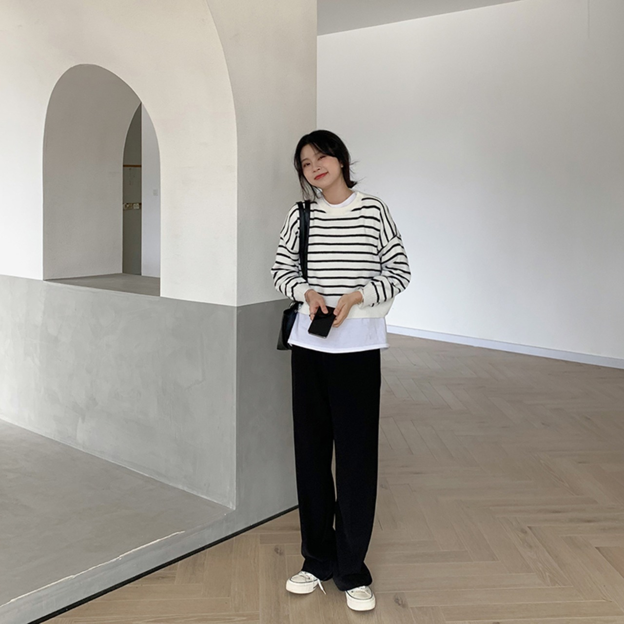 シンプルでコーデに取り入れやすいボーダーニット。