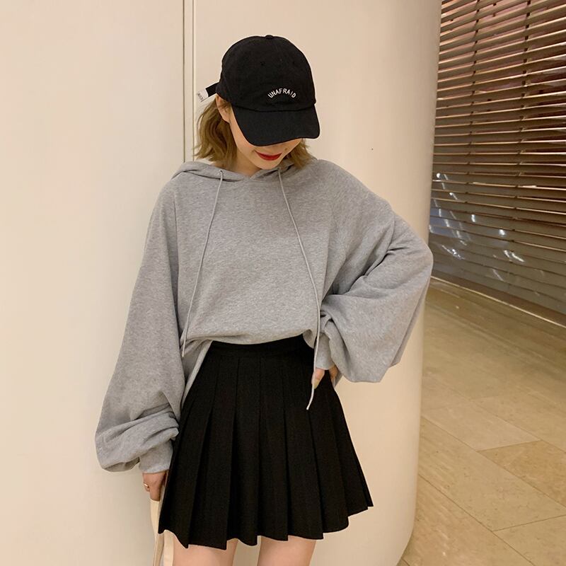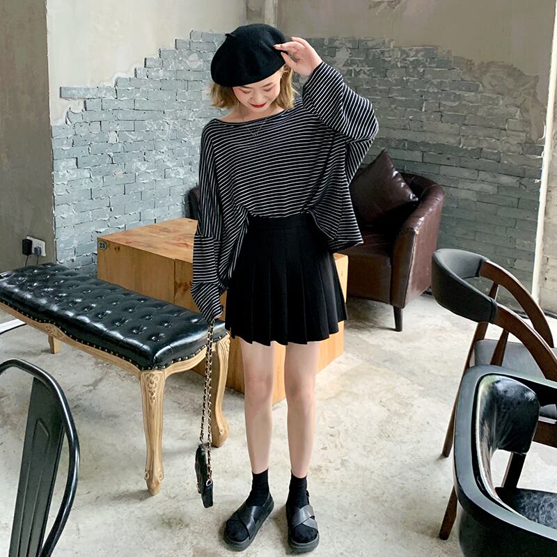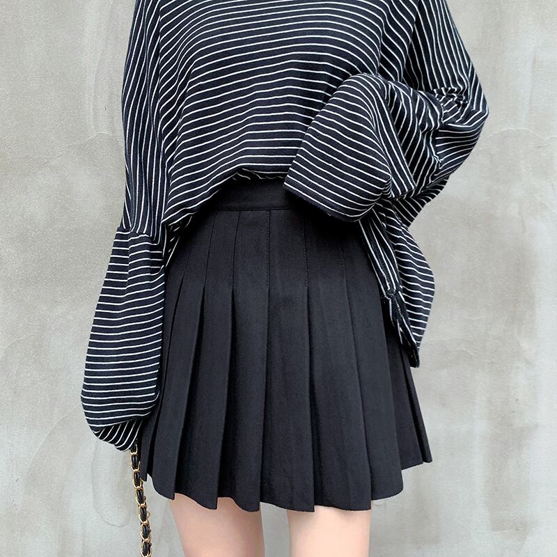 ミニ丈のシンプルなプリーツスカート。
