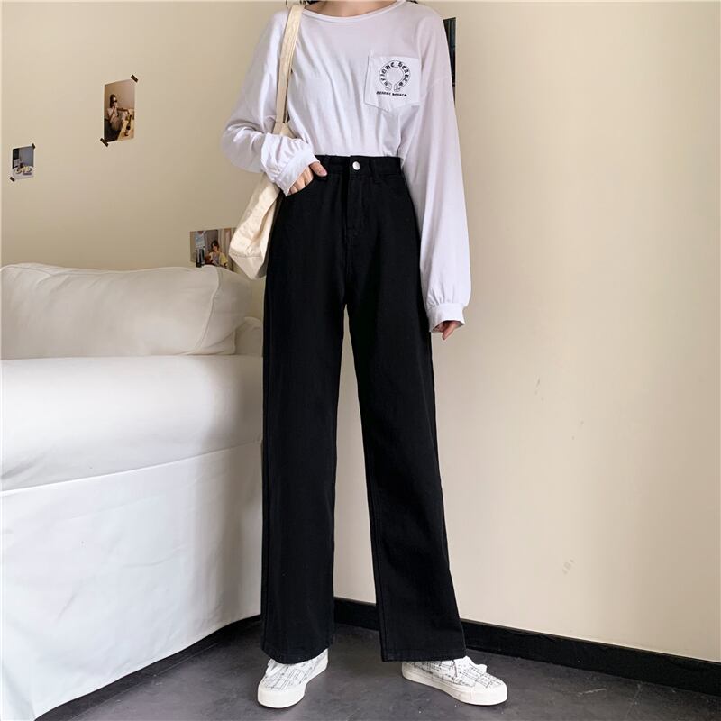 デニム ハイウエスト ストレート シンプル カジュアル 着まわし ストリート レトロ きれいめ 韓国ファッション