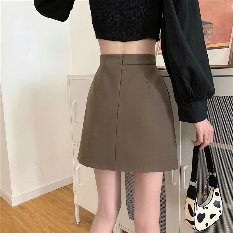 ミニ スカート ハイウエスト スリット Aライン シンプル カジュアル フェミニン 女っぽ 韓国ファッション