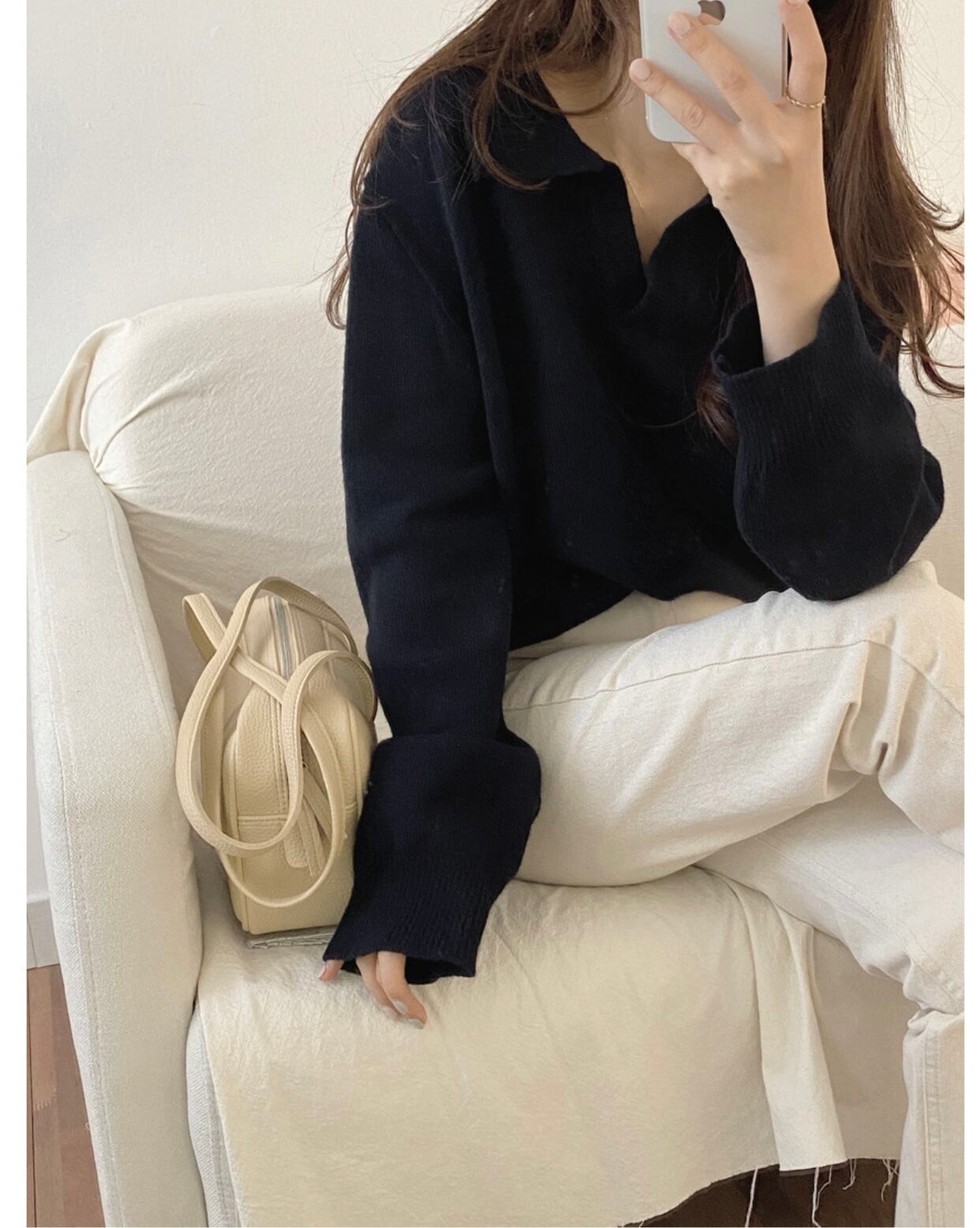 トップス ニット カジュアル 襟つき ゆったり ゆるカジ 着回し レトロ 韓国ファッション 大人可愛い