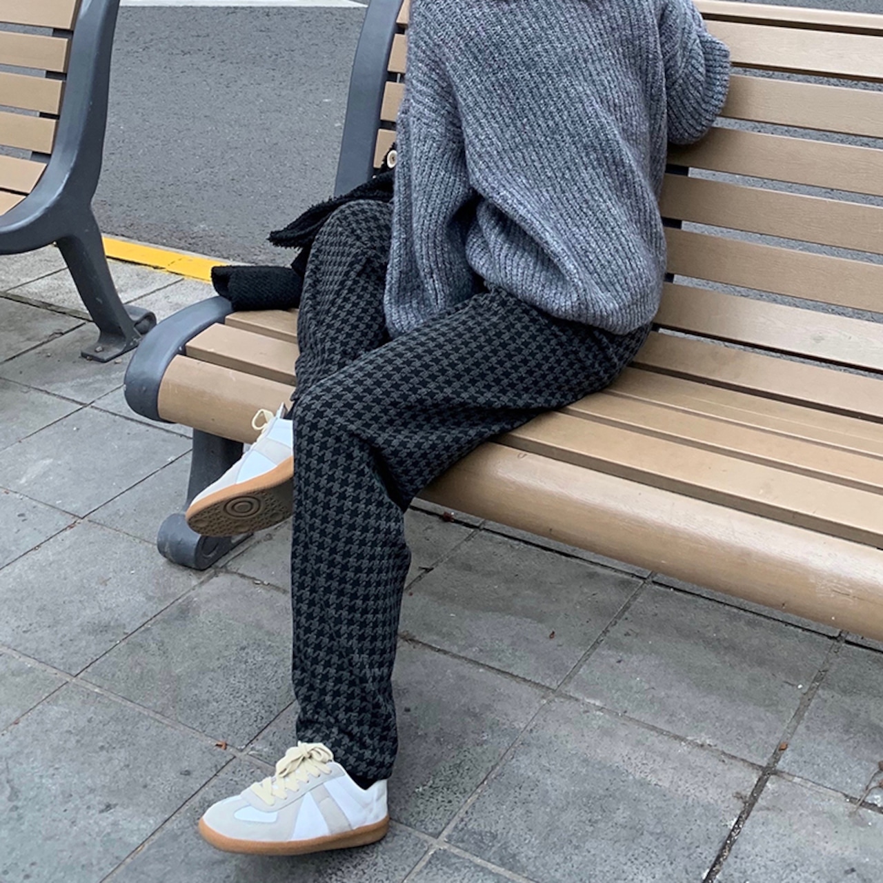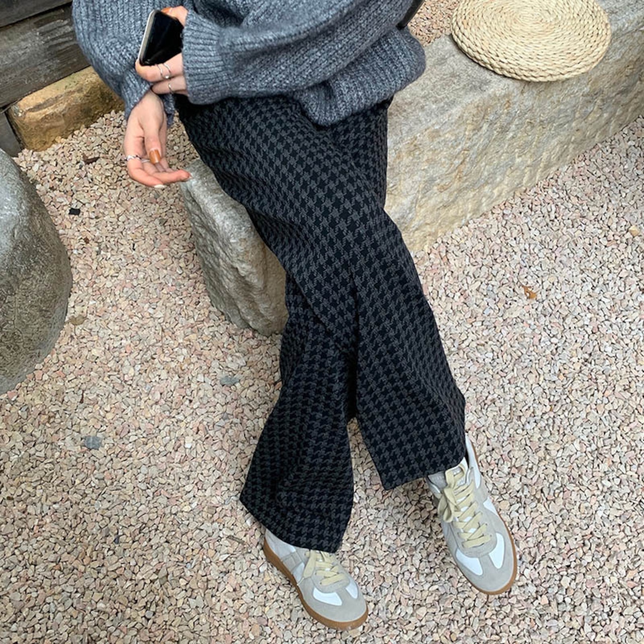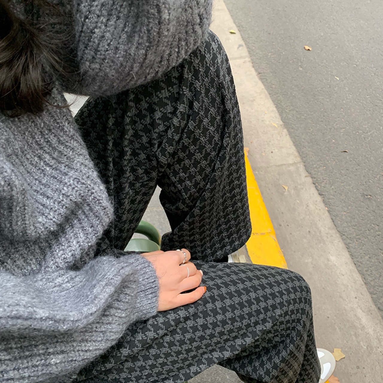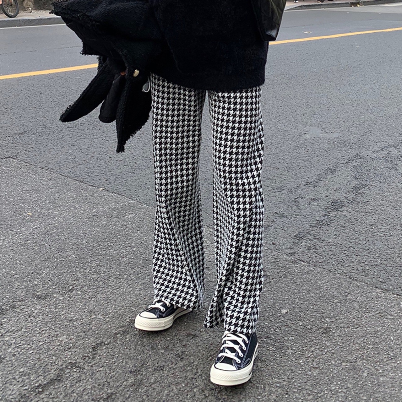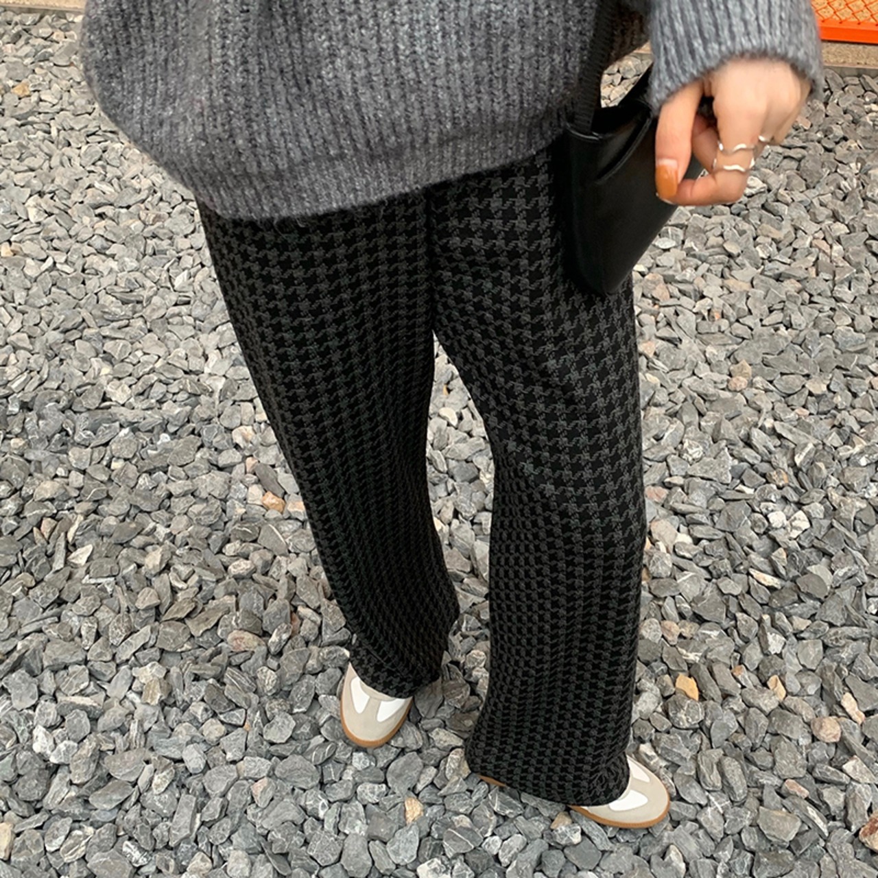 千鳥格子 ストレート ワイドレッグパンツ 韓国スタイル ハイウエスト カジュアルパンツ