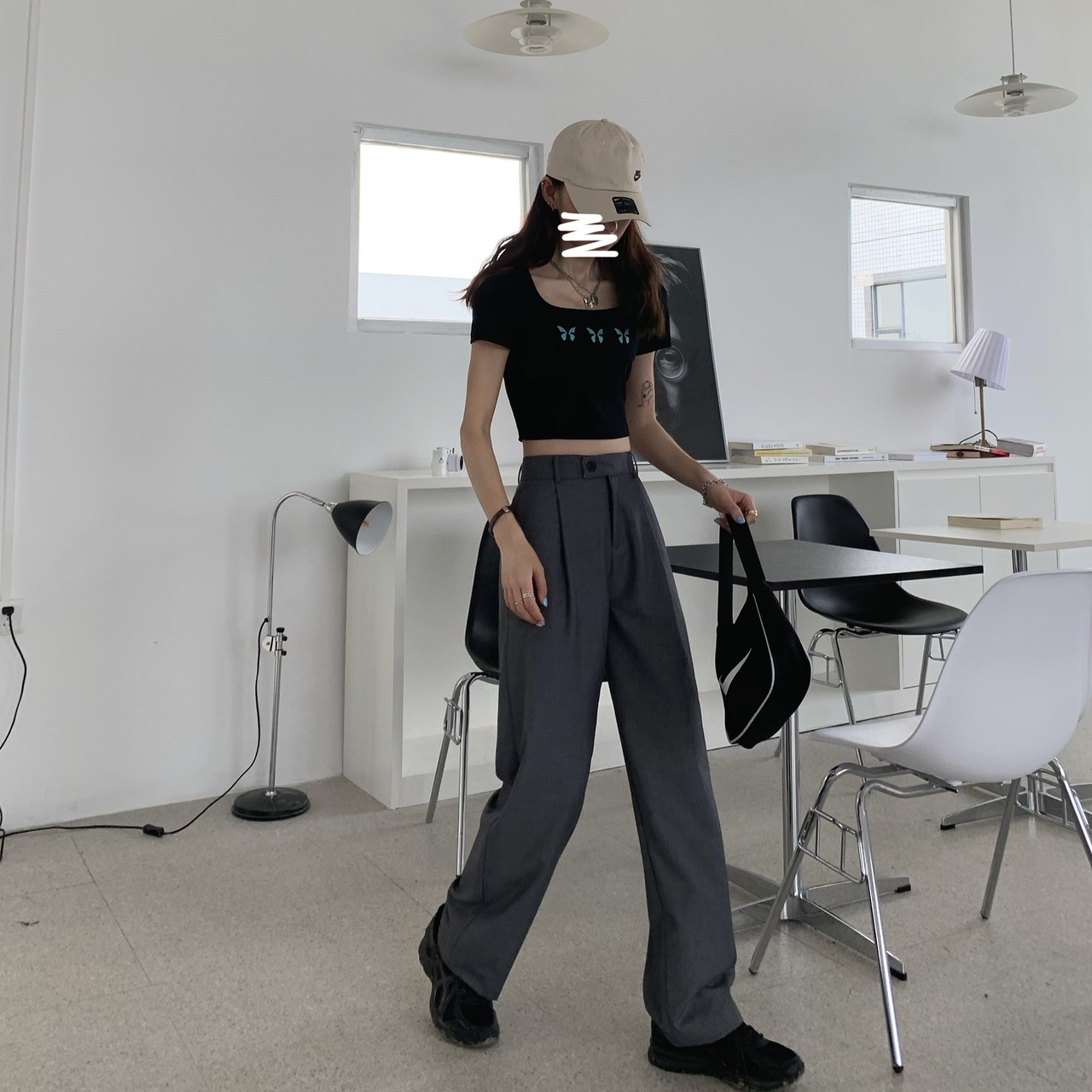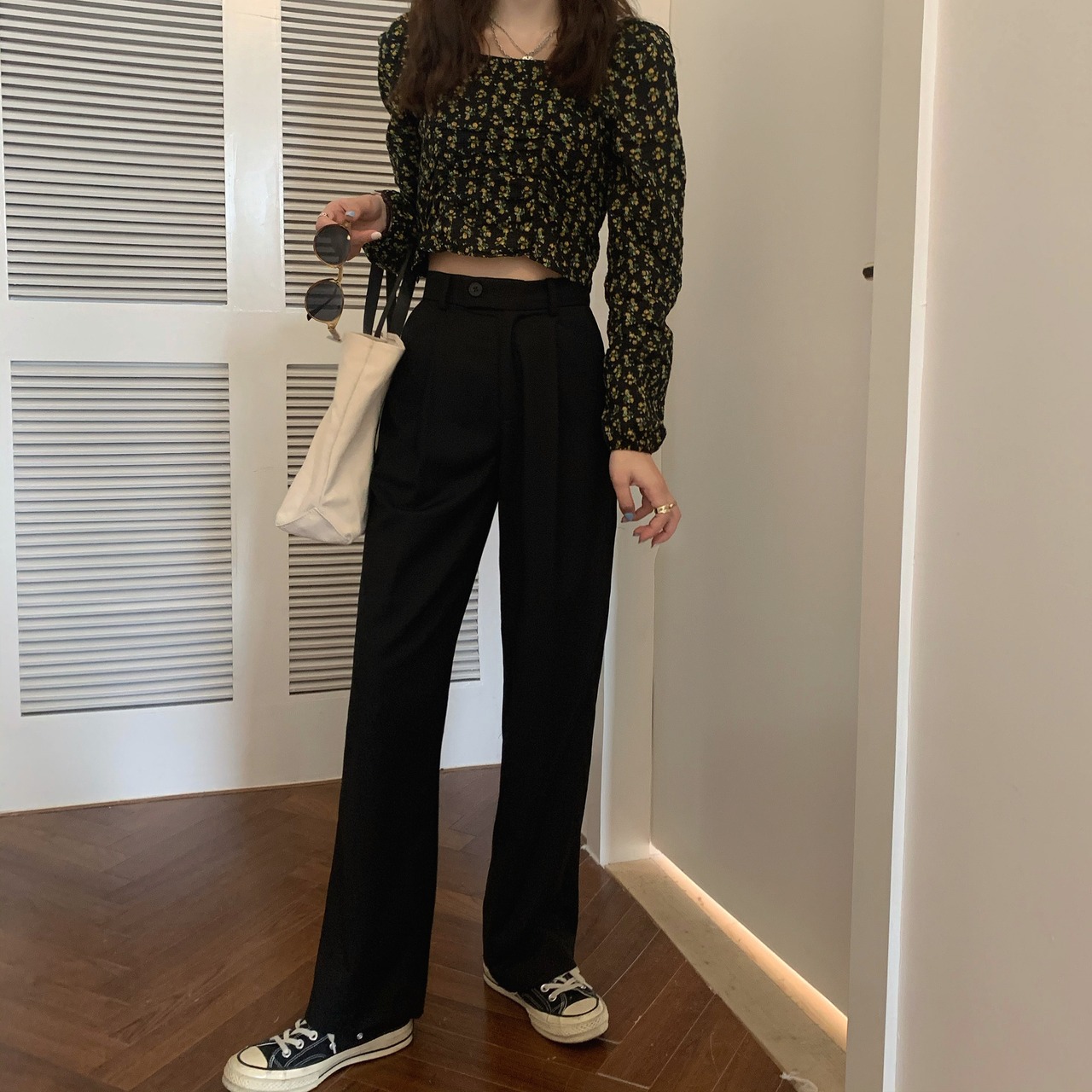 パンツ ボトムス ゆったり カジュアル 着まわし シンプル ハイウエスト 通勤 通学 美脚 大人可愛い 韓国ファッション