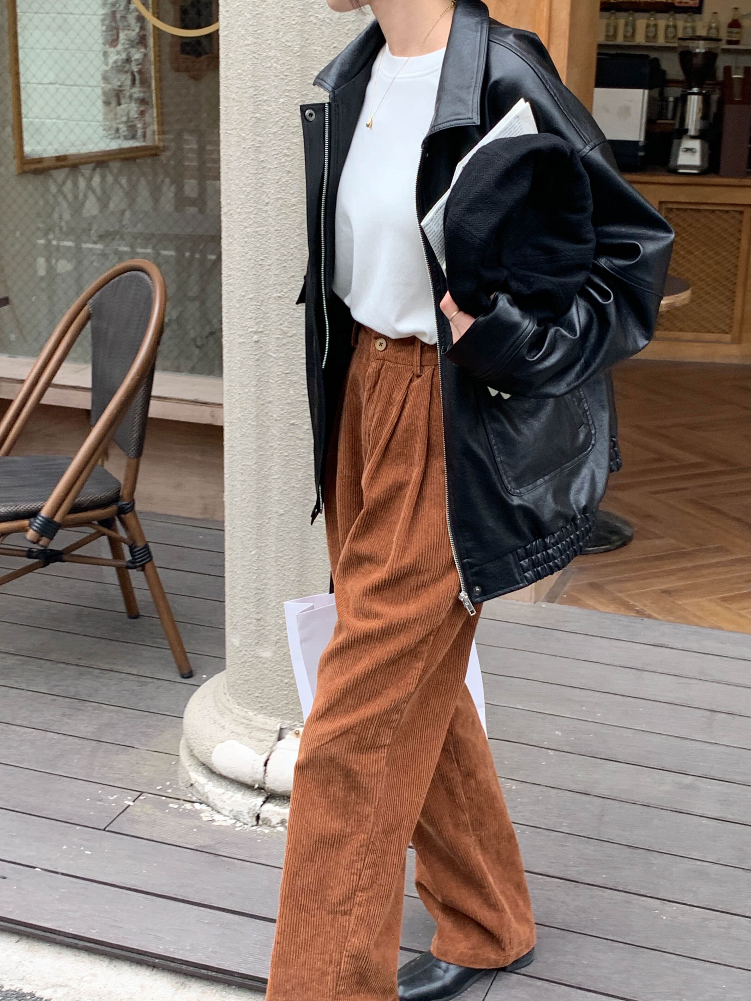 パンツ ワイド パンツ コーデュロイ ボトムス カラフル ゆったり カジュアル 着まわし シンプル ハイウエスト 差し色 大人可愛い 韓国ファッション