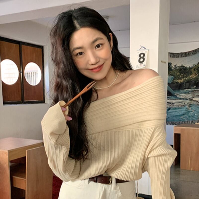 ニット セーター トップス オフショル オフショルダー きれいめ シンプル 大人可愛い 韓国ファッション