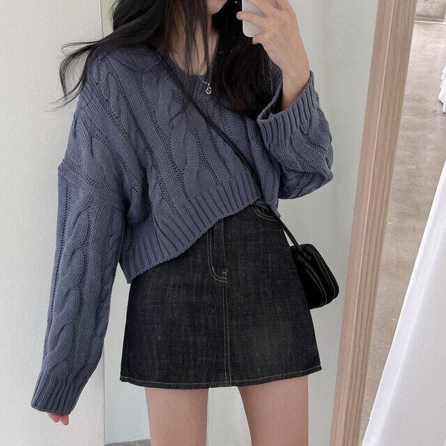 ニット セーター トップス vネック ケーブル編み きれいめ シンプル ショート丈 オーバーサイズ 大人可愛い 韓国ファッション