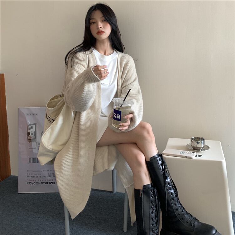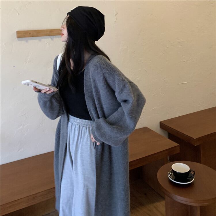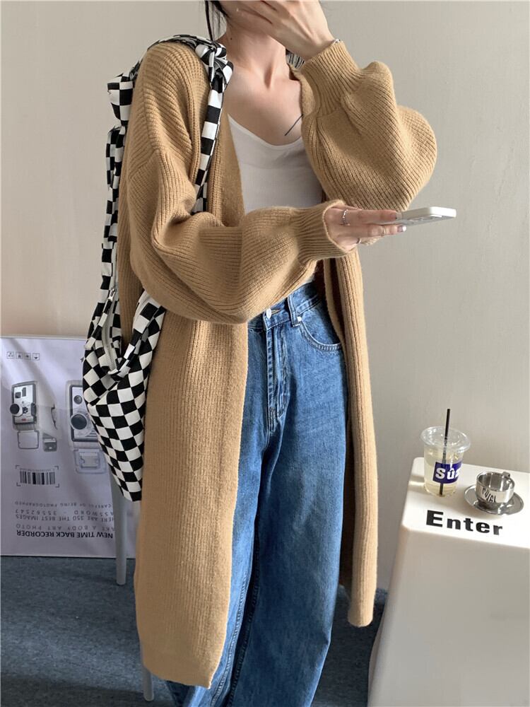 ニット カーディガン カジュアル レトロ シンプル 着まわし ロング 大人可愛い 韓国ファッション