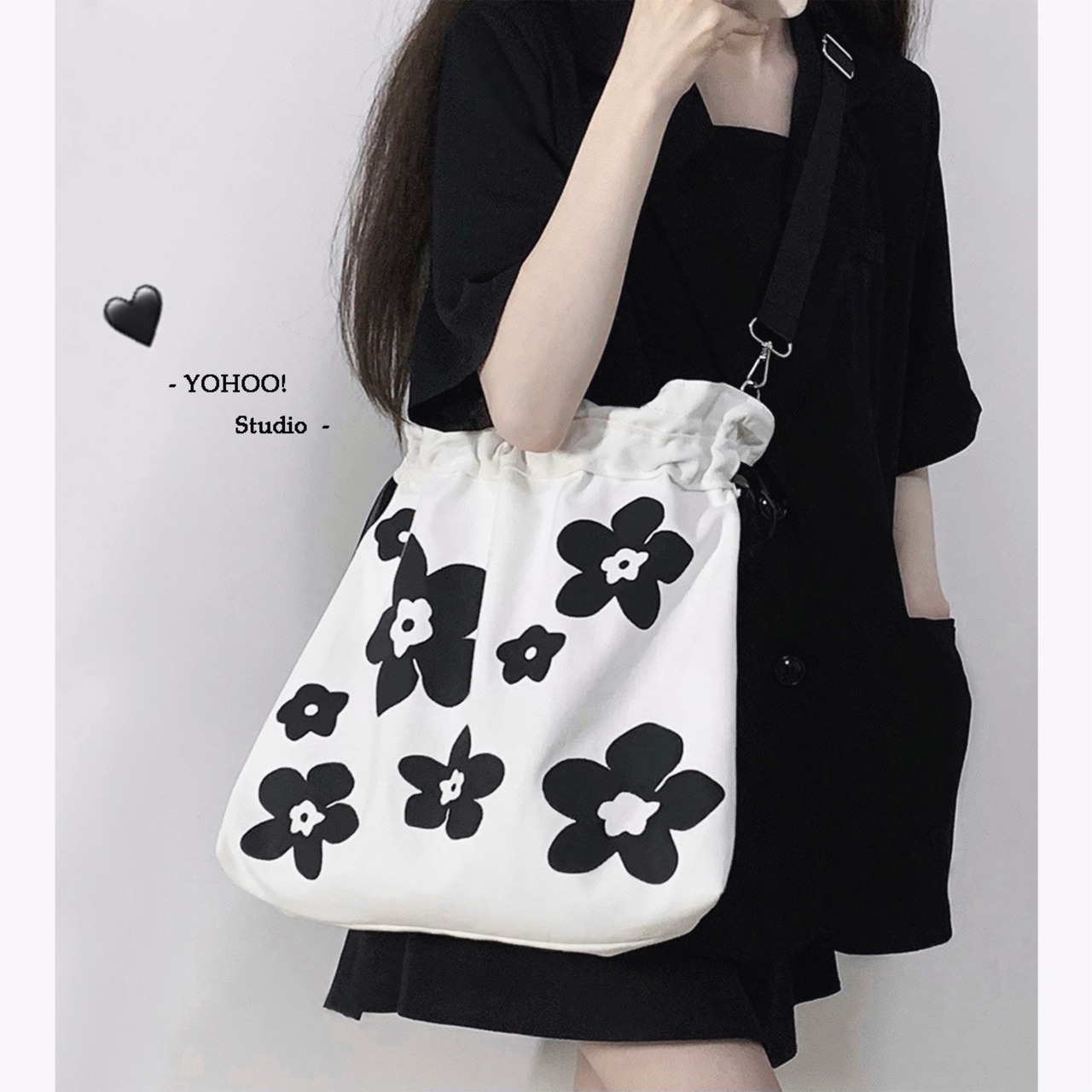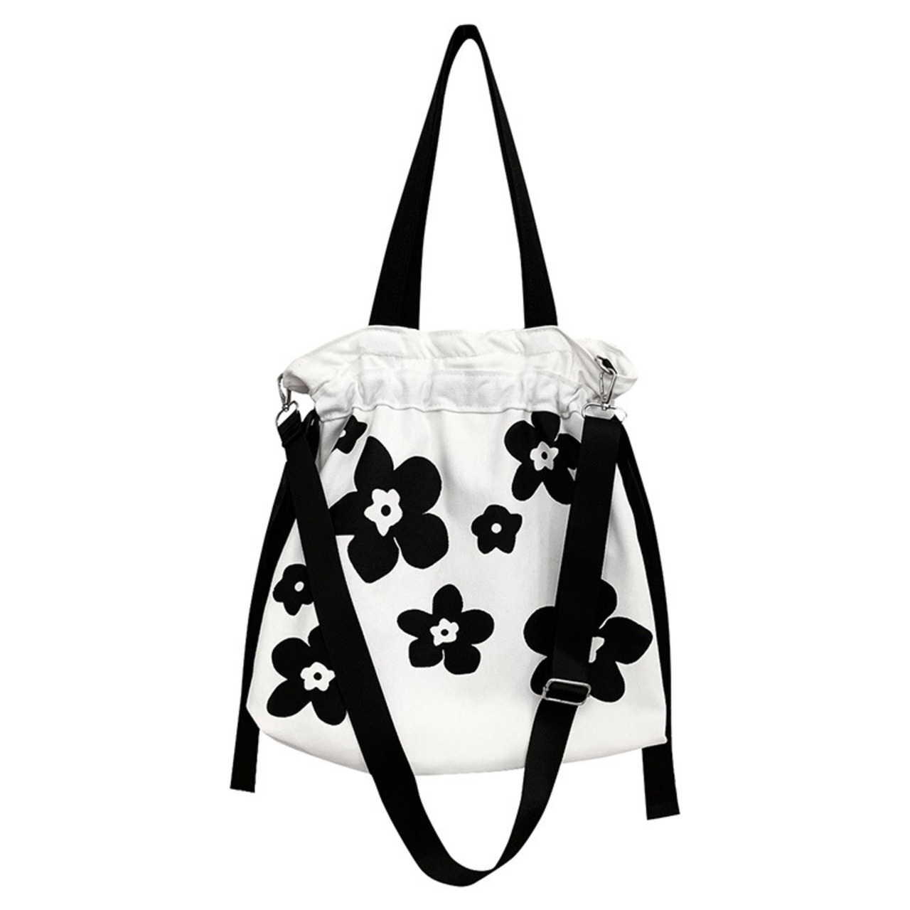 【人気バッグ】ショルダーバッグ 花柄 モノトーン 通学・通勤