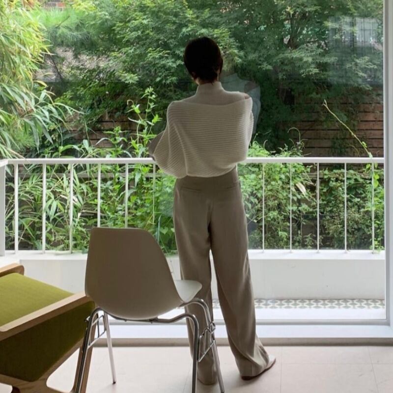 ハイネックニット ショールニット ニット トップス ツーピース ルーズ シンプル きれいめ トレンド 韓国ファッション 2color
