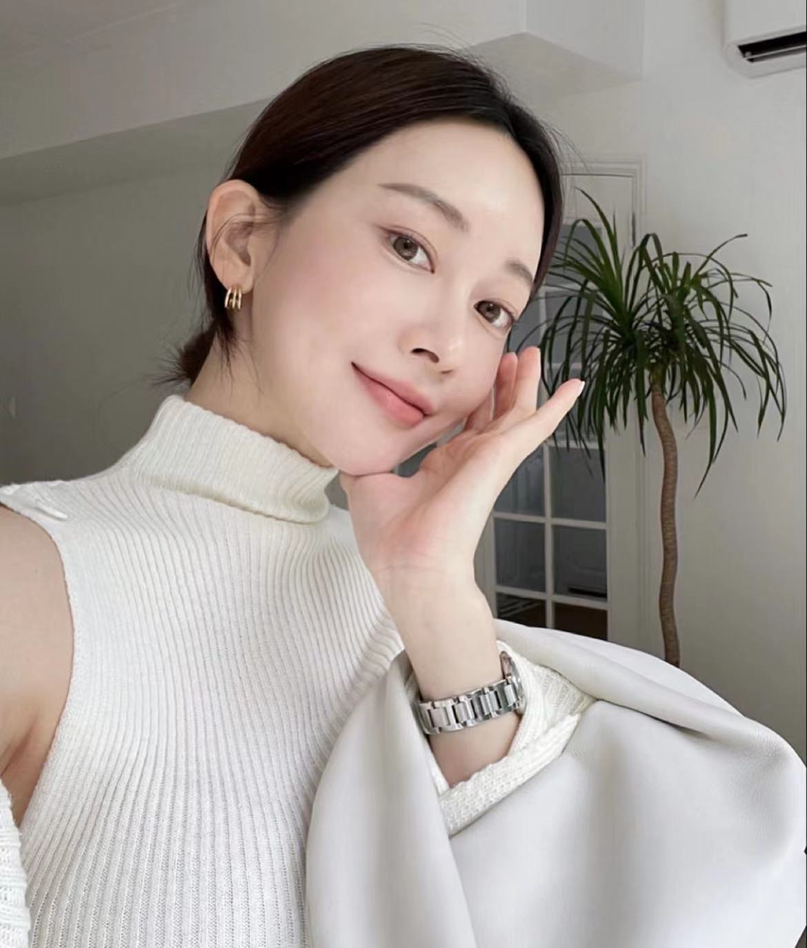 いろいろな着こなしを楽しめるハイネック+ショールニット。