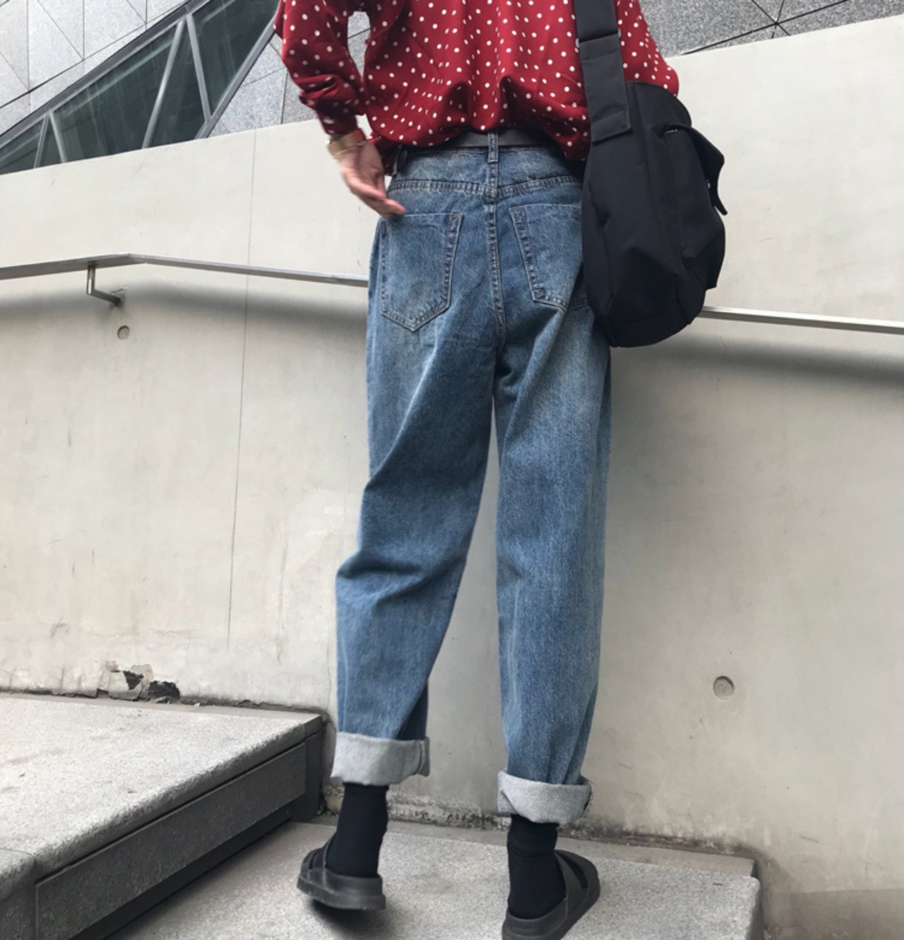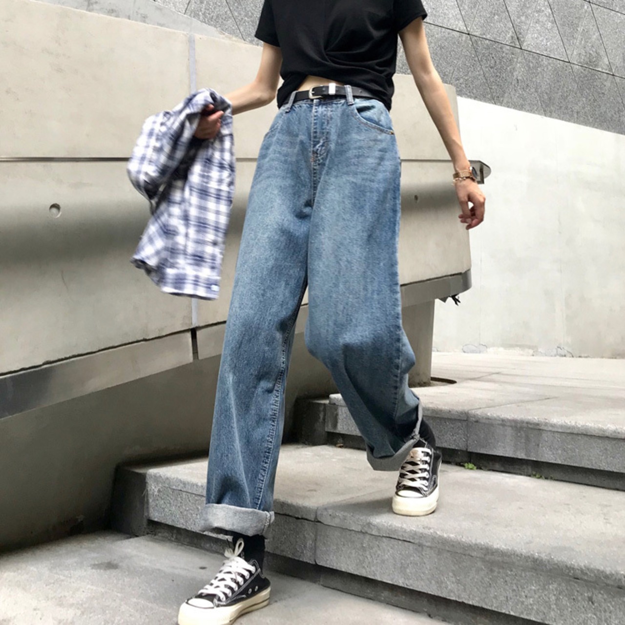 デニムパンツ デニム ジーンズ ジーパン ワイドレッグパンツ ワントーン 無地 ボトム ハイウエスト ルーズ シンプル カジュアル レトロ 韓国ファッション S-XL