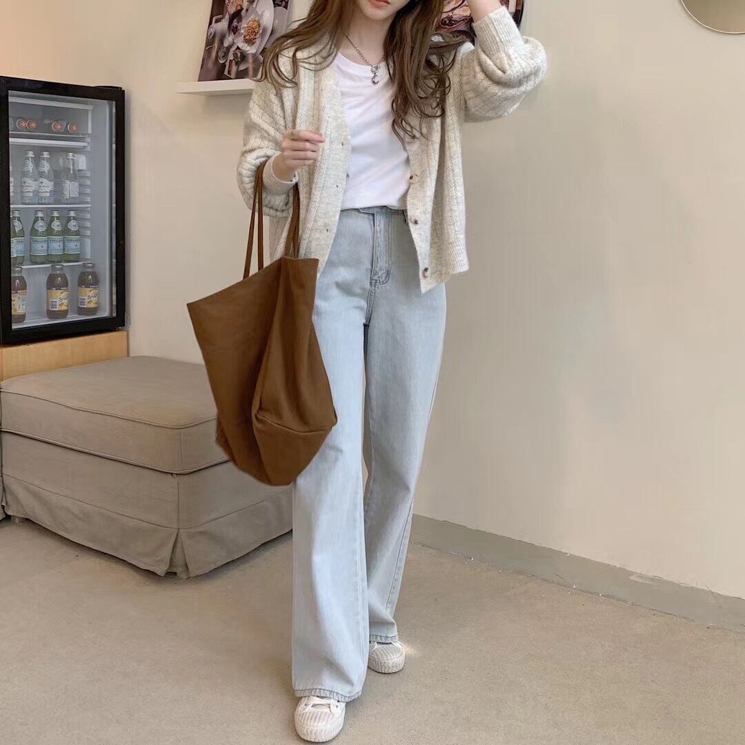 ニットカーディガン カーデ 長袖 Vネック シンプル カジュアル 大人可愛い レトロ 韓国ファッション 4color S-2XL