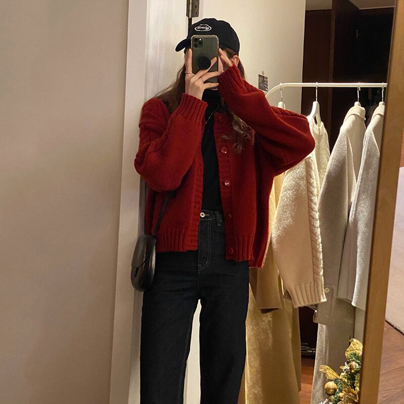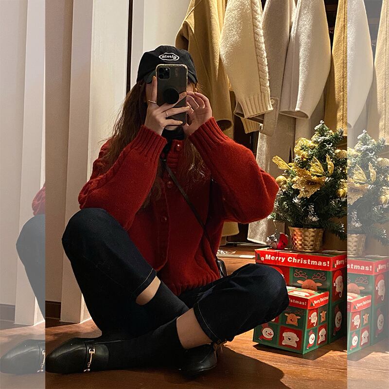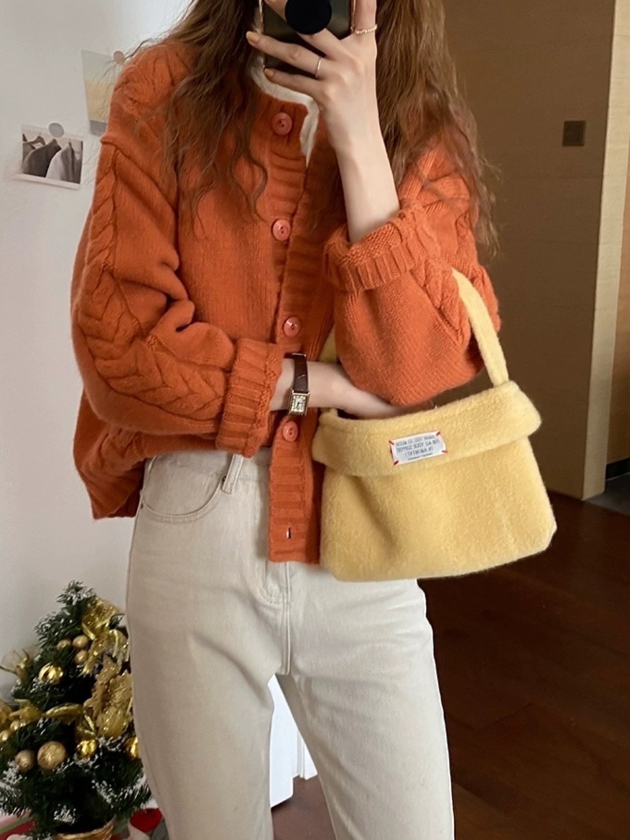 ニットカーディガン カーデ 長袖 ケーブルニット シンプル カジュアル レトロ 韓国ファッション 3color S-2XL